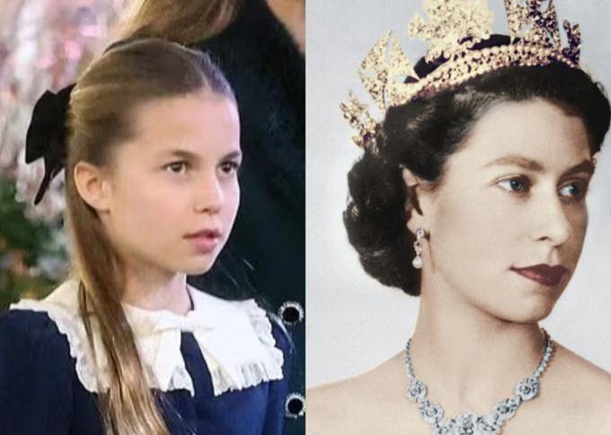 尤其是夏洛特公主那双锐利而坚定的眼睛,以及她那超越年龄界限的从容不迫和不怒自威的气质,所有这些都让人联想到英国女王的再次出现。