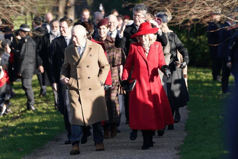 查尔斯国王和卡米拉王后带领王室成员们,在圣诞节当天,向聚集在桑德灵厄姆庄园外的热情人群挥手致意,令王室支持者们欣喜不已。