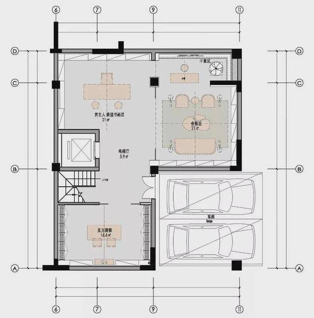 ▲地下室的休闲厅,摆上休闲沙发与椅子,定制大尺寸的书架,地面朴素素色的地毯,还在角落位置摆上古琴,让空间显得文雅而华丽。