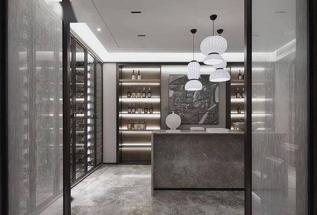 ▲品酒室布置中岛吧台,加入大面积的酒格架,让喝酒聊天成为一种情趣优雅的体验。