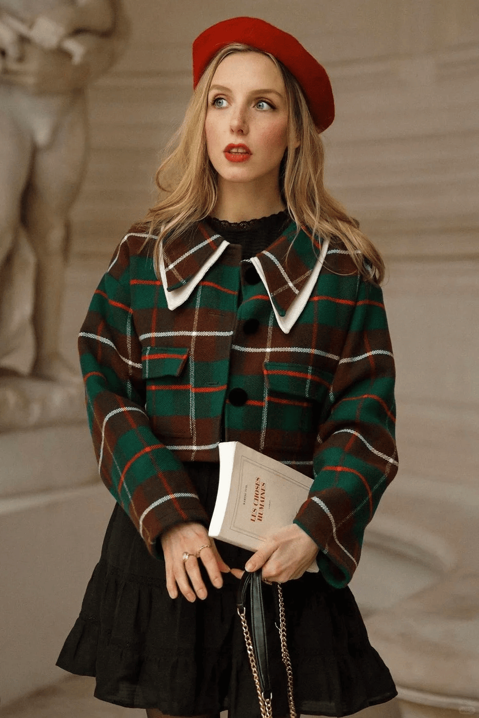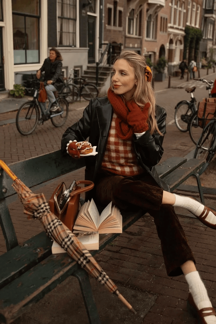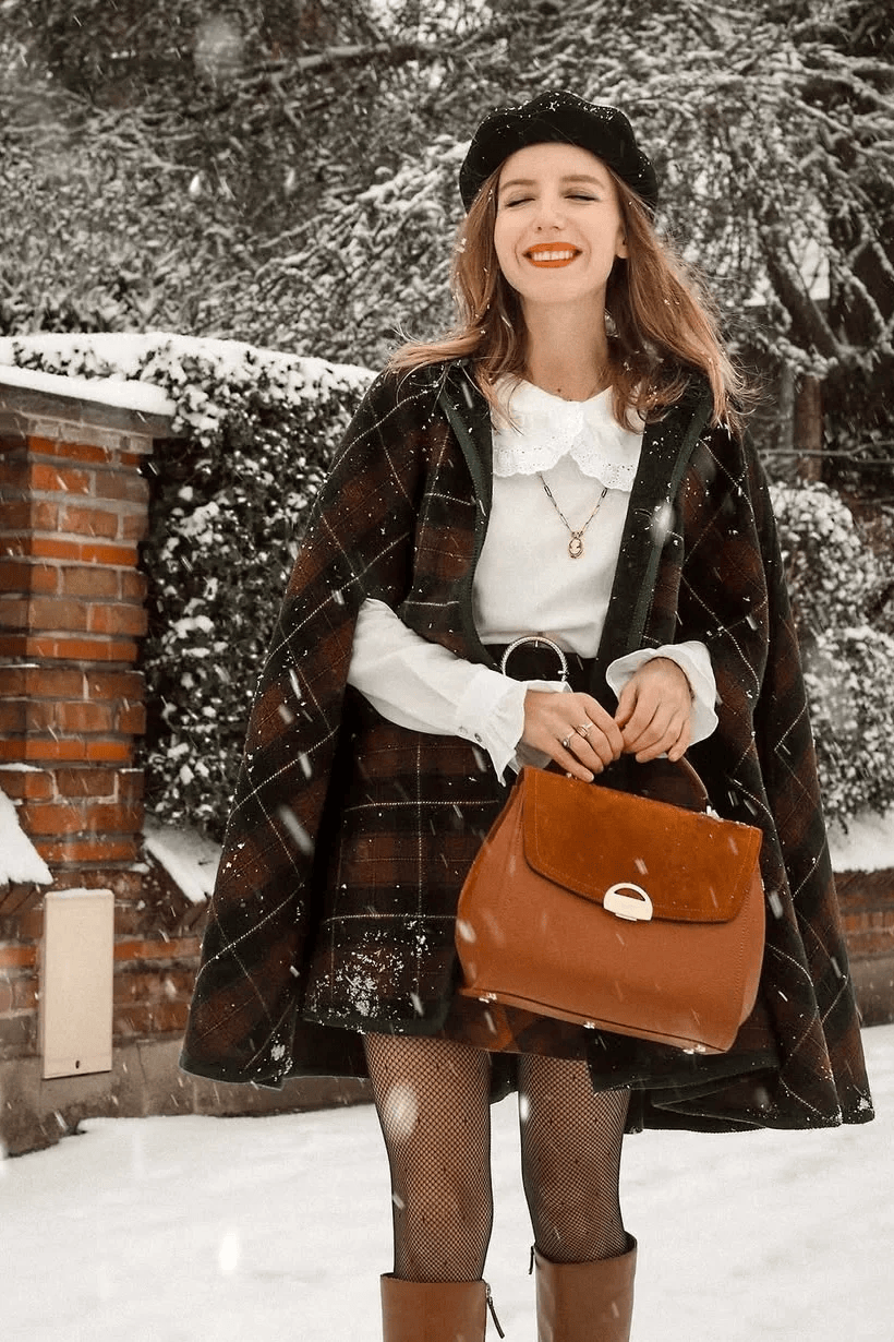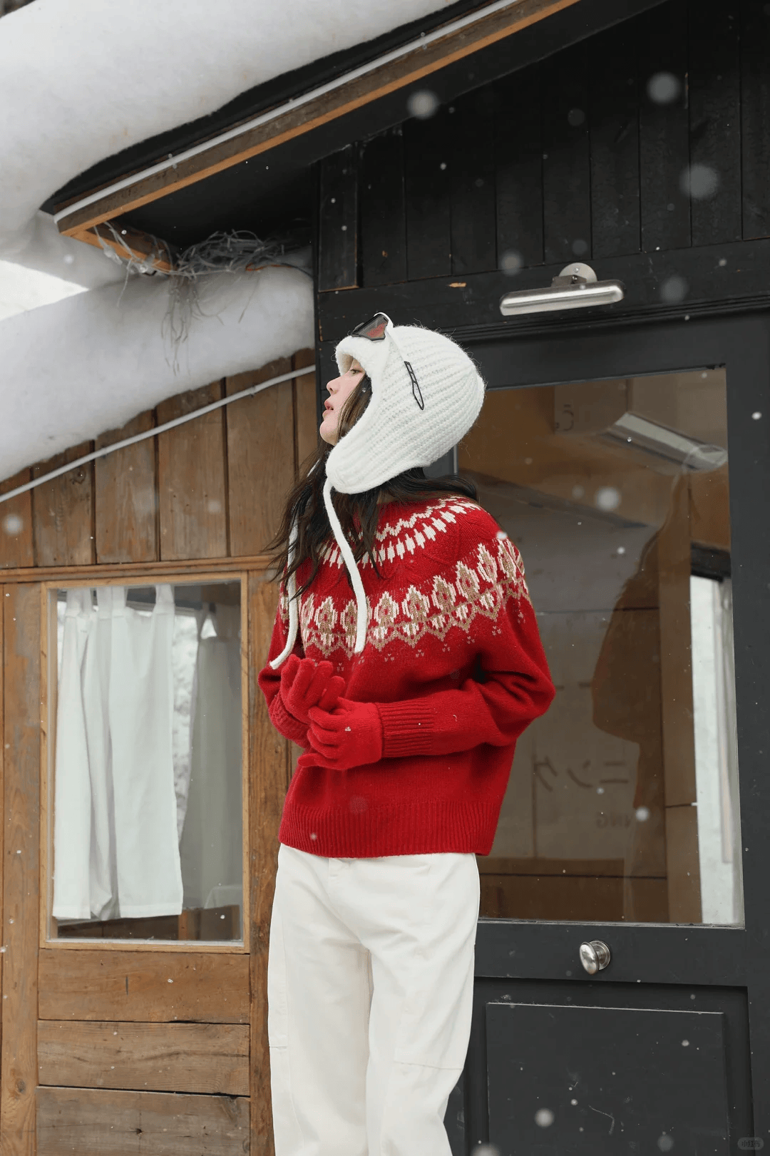 北欧森系诗人:米白高领+格纹围巾+麂皮长靴,手持一本诗集缓步于雪地,宛如安徒生笔下的冬日旅人。
