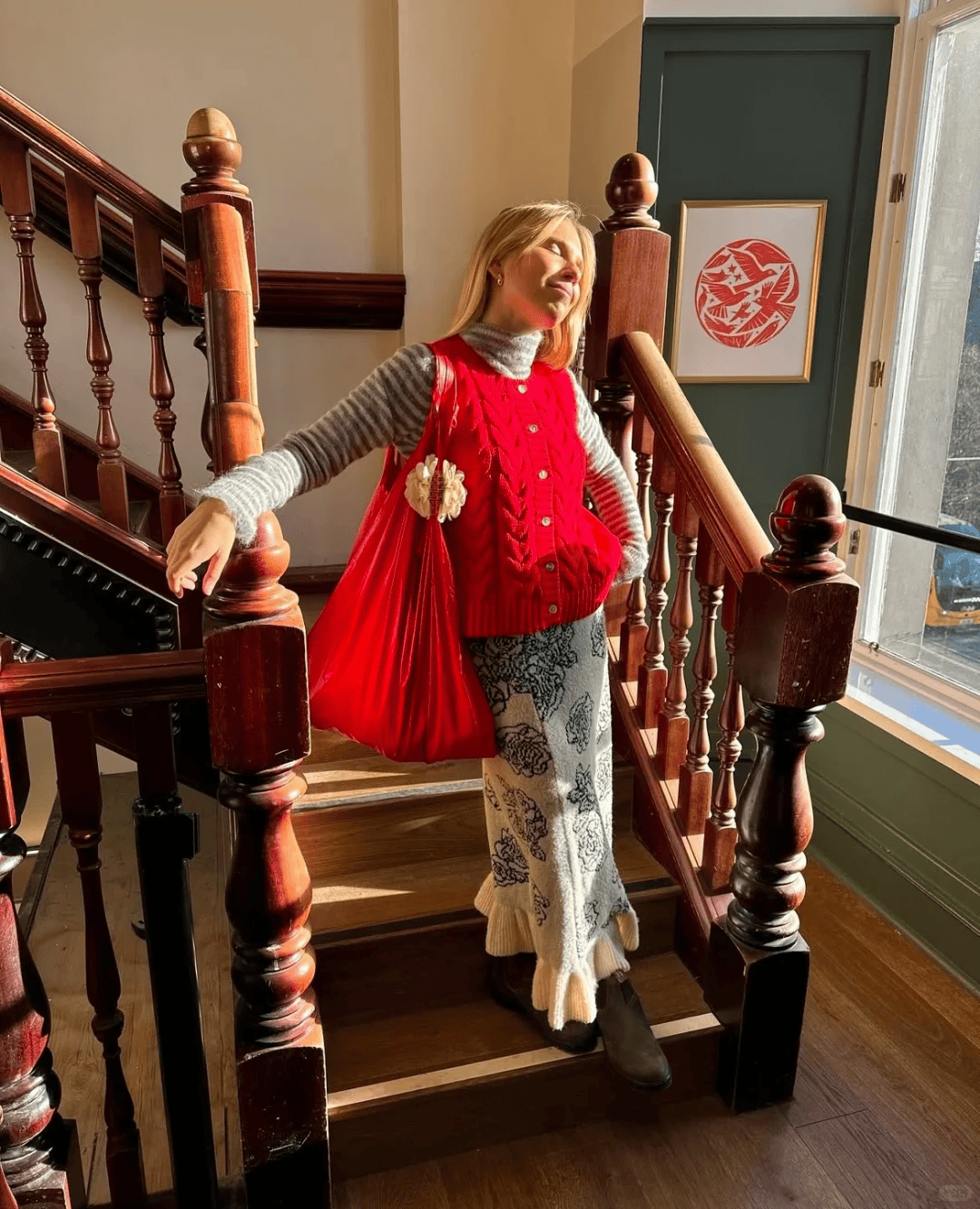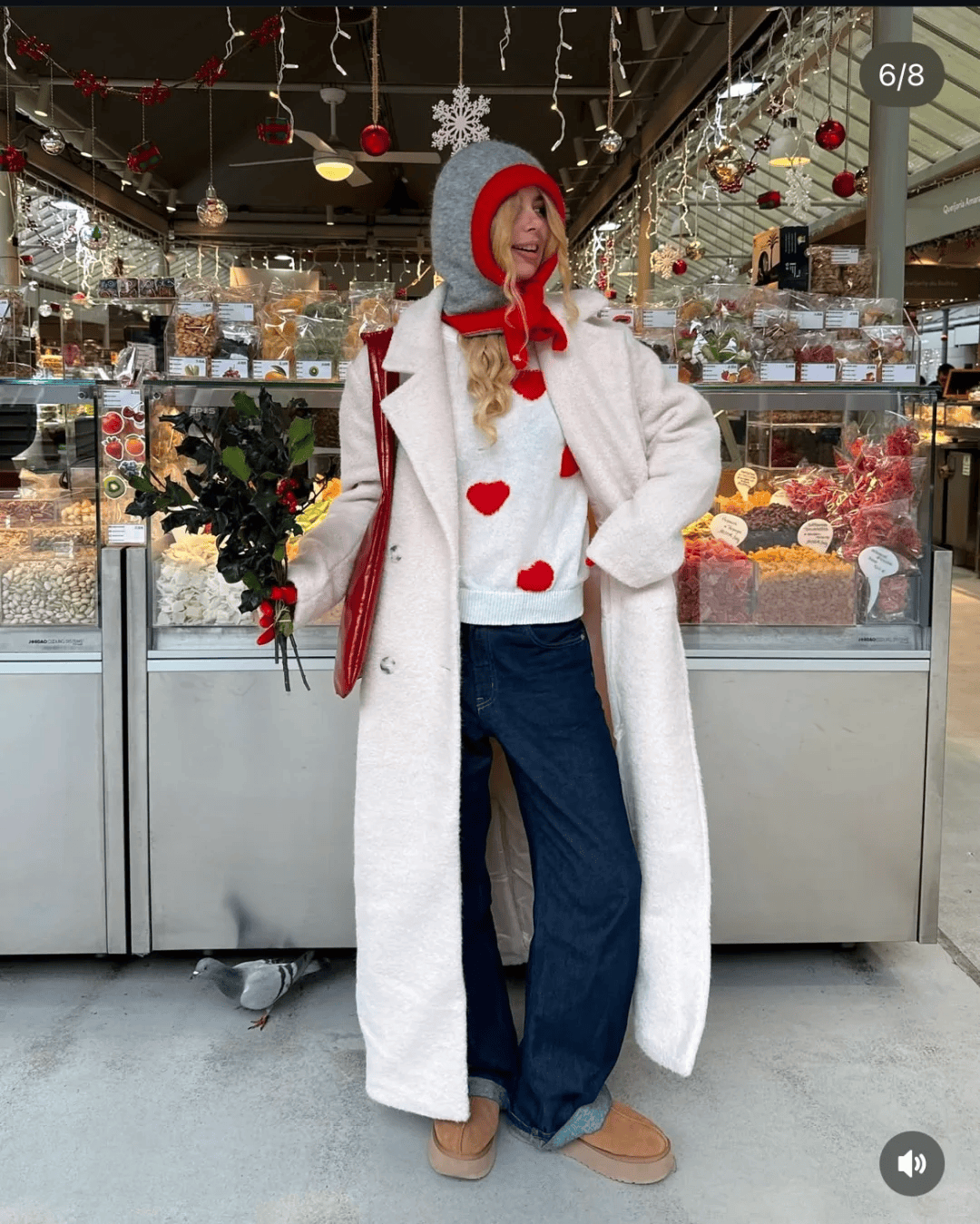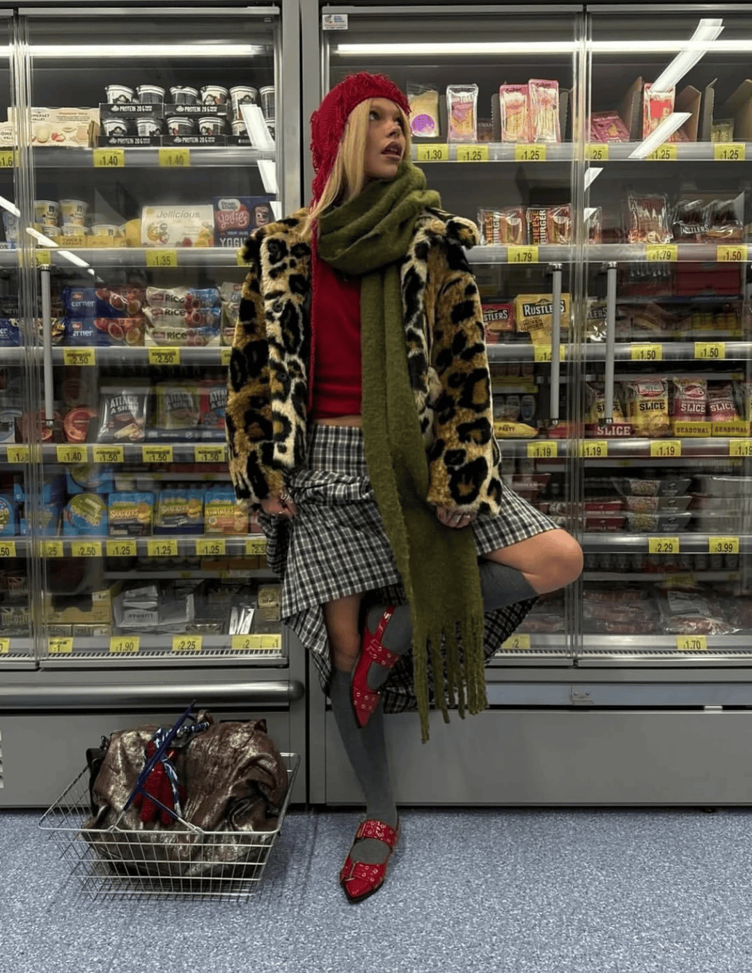 混搭叛逆者:圣诞图案卫衣+亮片短裙+马丁靴,用幽默解构传统,宣告节日也可以自由不羁。