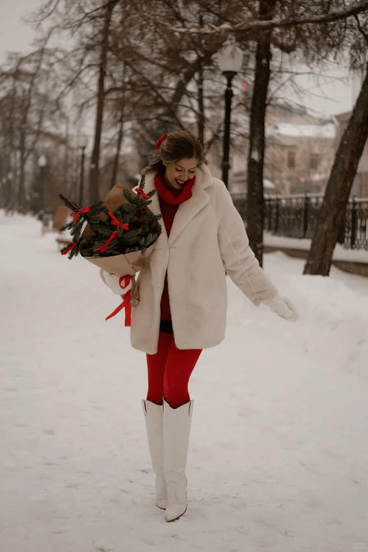 当街角的雪松挂上彩灯,橱窗飘出热红酒的香气,冬日的浪漫在空气里悄然发酵。新年与圣诞双节交叠,不仅是情感的归处,更是风格的舞台——穿搭不再只是御寒的工具,而是一场关于仪式感的艺术表达。如何用缤纷的色彩点亮寒冬,让衣着成为节日氛围的延伸?以下从色彩哲学、材质碰撞、风格演绎、细节点睛与文化意蕴五个维度,为你解构一场兼具视觉冲击与情感温度的节日穿搭诗学。