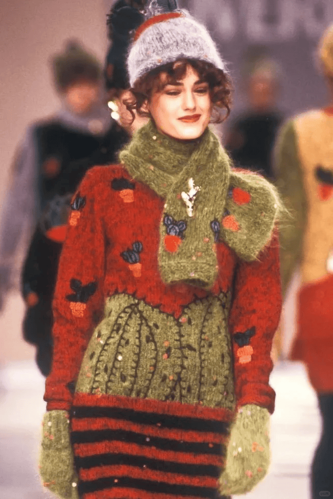 手工质感:粗棒针编织、手绘印花、钉珠刺绣,每一处细节都是对抗工业化冷漠的温柔抵抗。