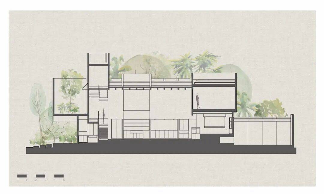 该Atelier本身即是事务所设计理念的“活体原型”(Living Prototype)。设计中融入了对材料本土性、气候适应性与结构真实性的深刻思考。例如,大量使用科利马本地火山石、红砖与裸露混凝土,回应了墨西哥西海岸湿热气候条件下的通风、遮阳与热惰性需求。因此,这座建筑不仅是“被使用的空间”,更是“被研究的空间”——持续验证着可持续建造策略在地方语境中的可行性。