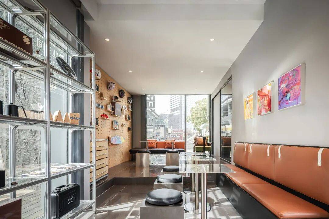 下层作为“前台”:临街面完全打开,设置吧台与高脚桌,形成开放式社交界面。顾客在此饮用咖啡、交谈、休憩,其行为本身即成为街道景观的一部分。