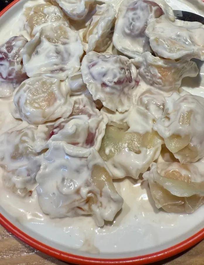 波兰饺子外形类似中国饺子,常放肉松或肉末食用。
