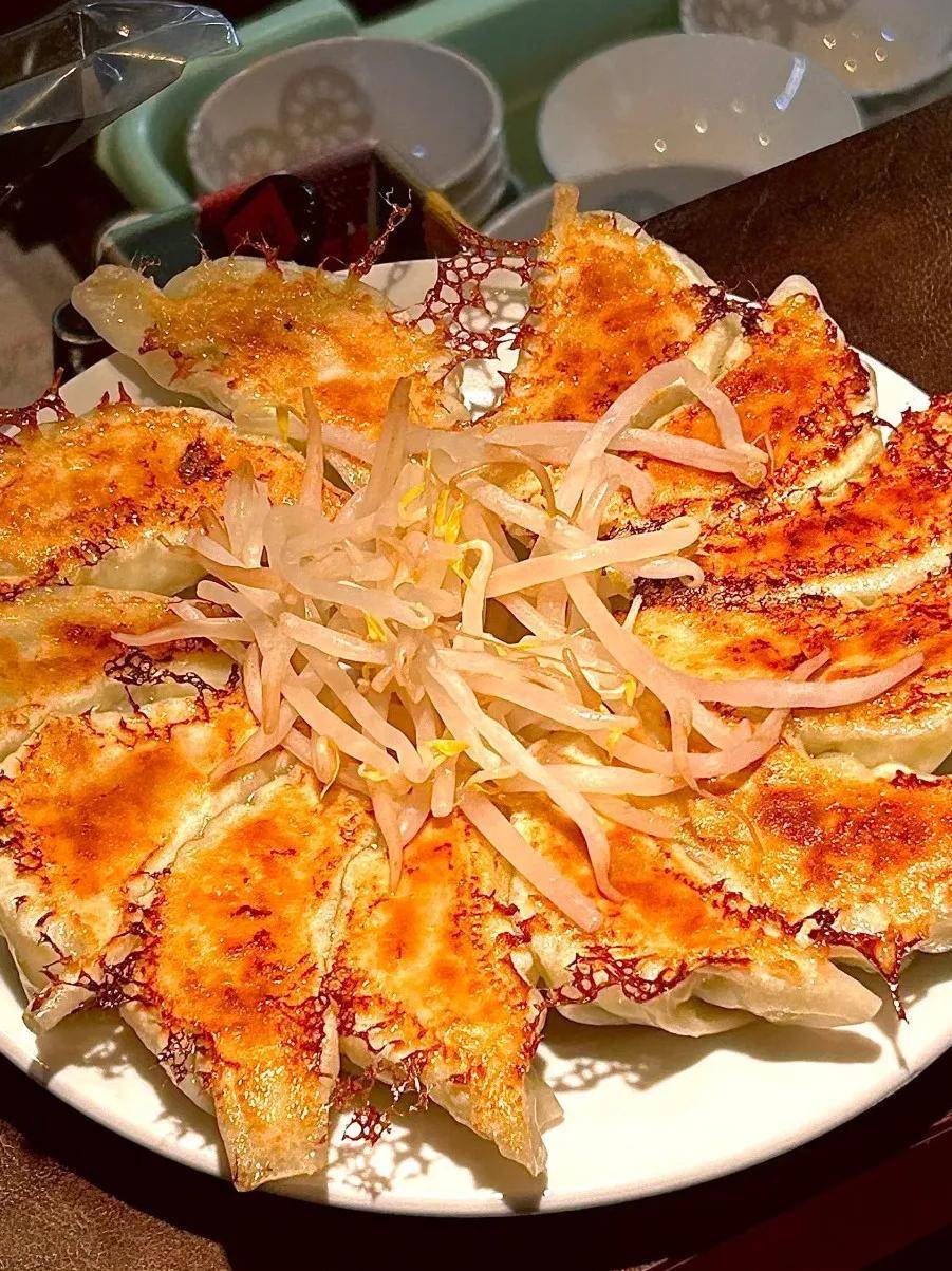 日本饺子,看这形状、这色泽,有木有中国煎饺的既视感?日本的饺子从外形上看略显“苗条”,精致的花边展示了灵巧的手艺。