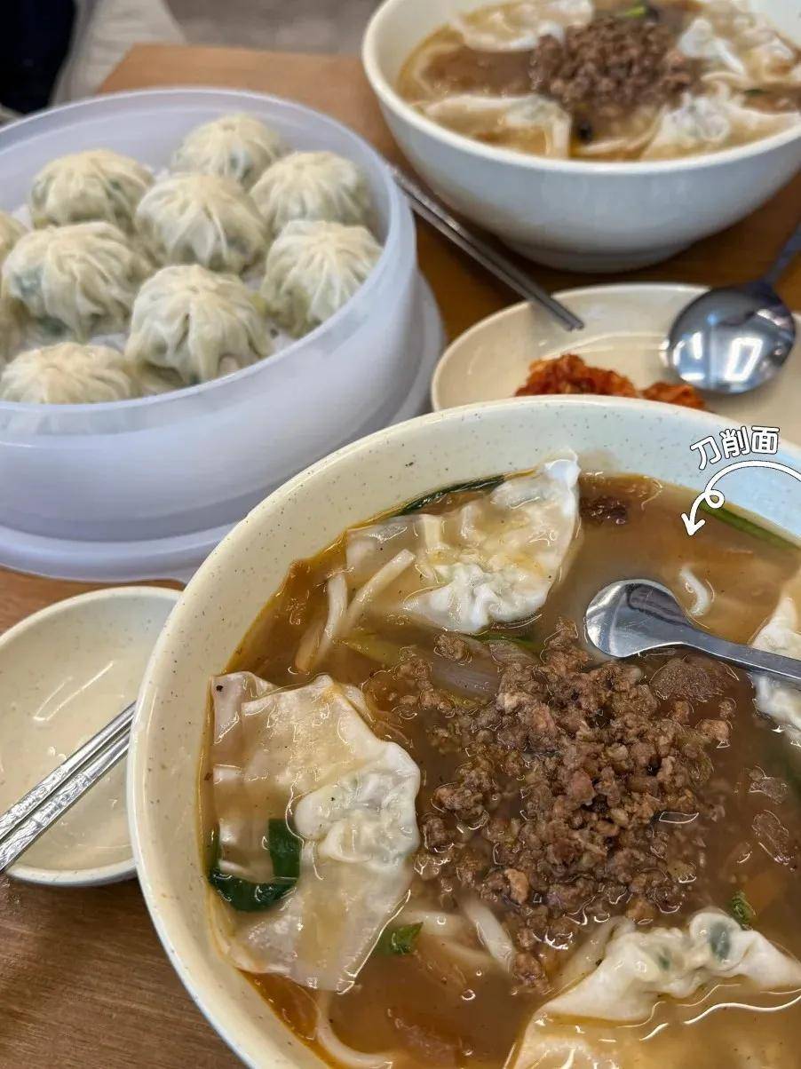 韩国饺子,清汤配饺子,满满的吃馄饨的幸福感。韩国的饺子风味各具特色。有的是烹煮的,一口即食,由猪肉和青葱混合而制。