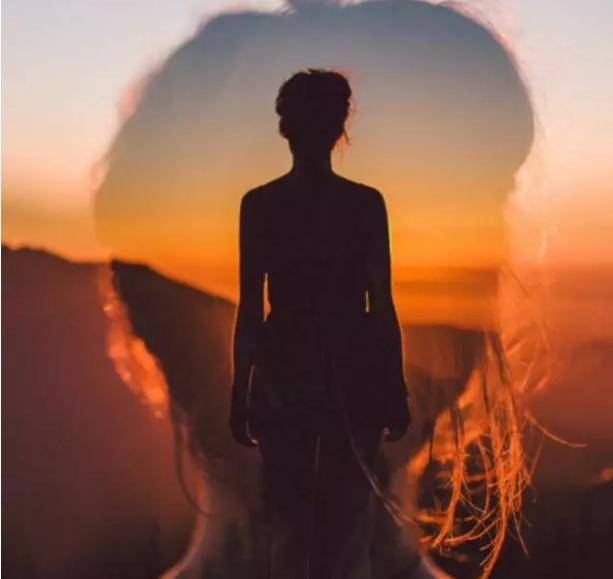 《图片4》:人物剪影背后叠加一个模糊的长发女性轮廓