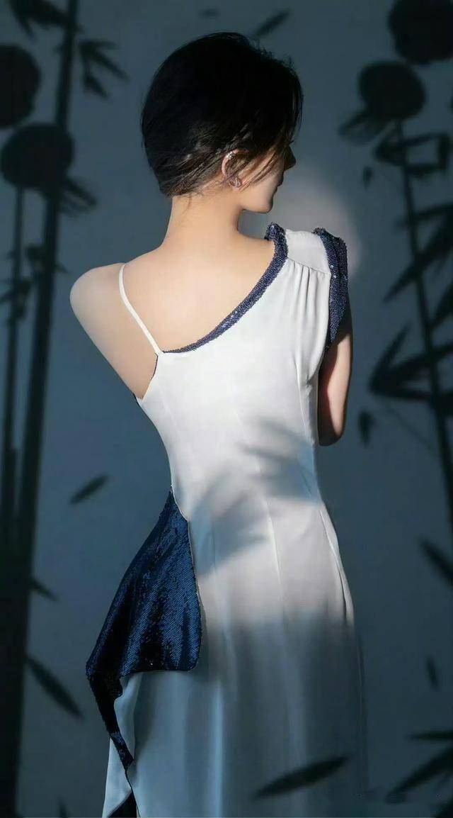 她穿的那身月白色旗袍也选得妙。立领掐得脖颈修长,盘扣系得恰到好处,袖口露出的手腕白得像新磨的羊脂玉。最点睛是腰间那根素色腰带,轻轻一束,便把身材比例划成黄金分割。走动时裙摆漾开涟漪,倒像把江南的烟雨都穿在了身上。