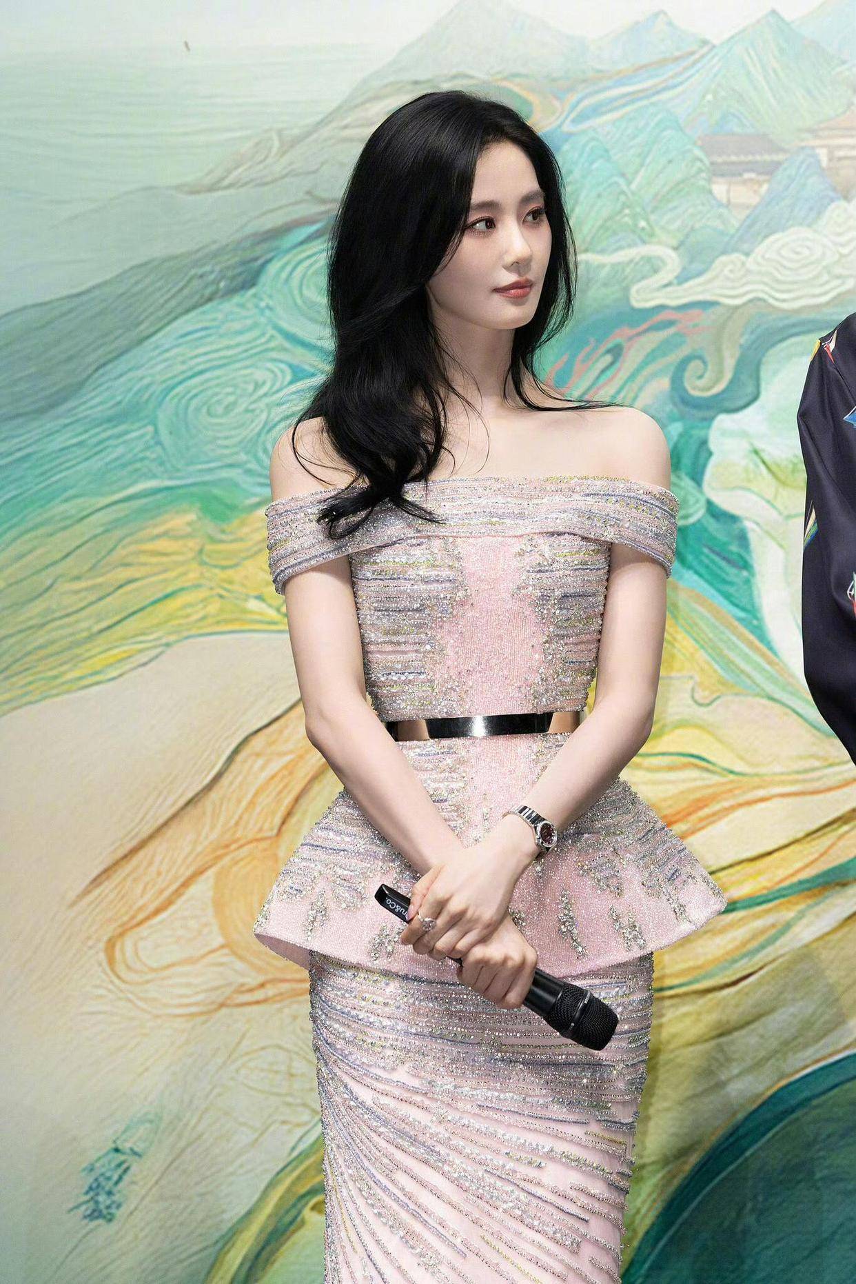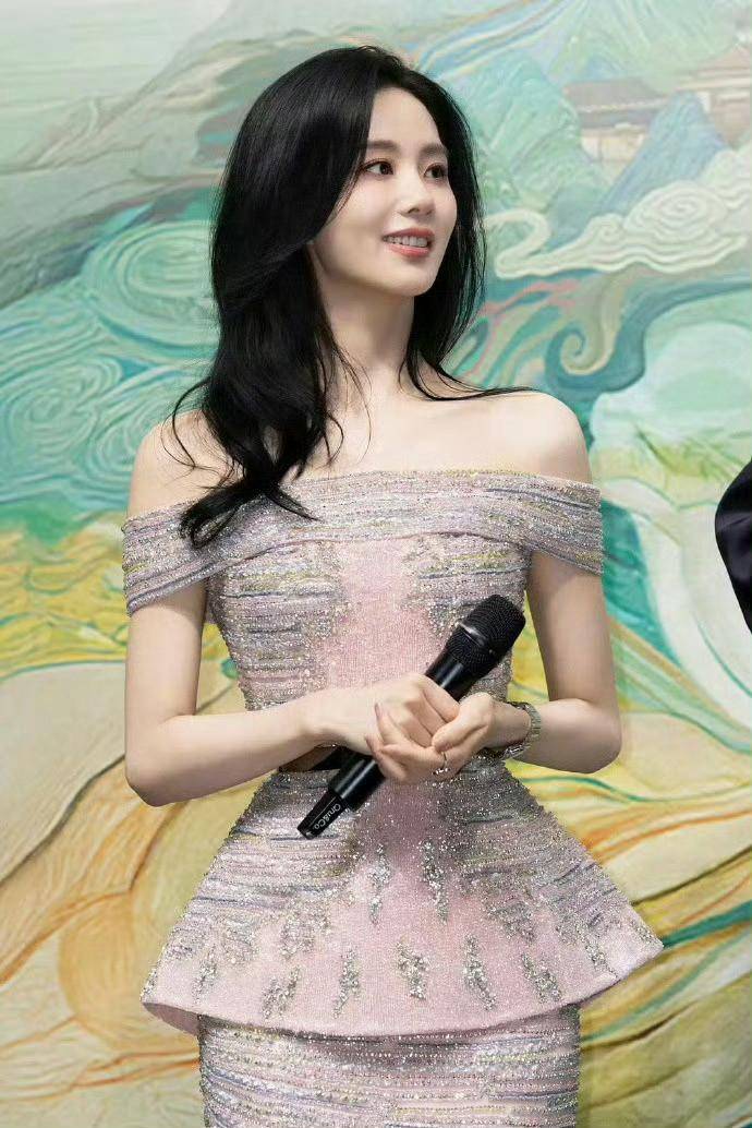 刘诗诗温婉佳人,小蛮腰衬粉紫露肩裙,时尚风采令人倾心