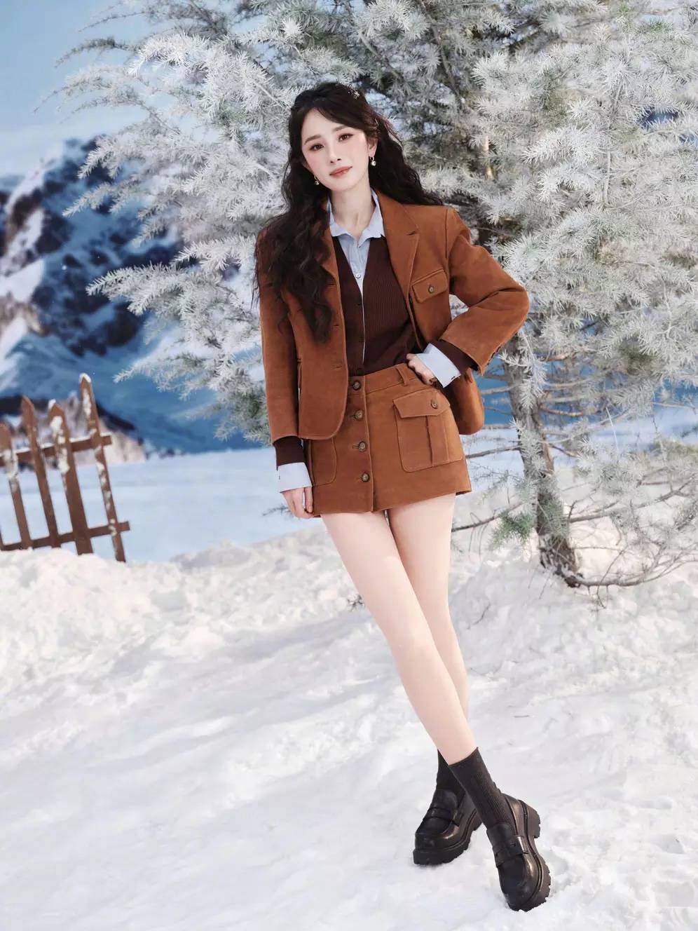 - 雪地造型的惊艳:寒冬里的超短裙+大长腿,用白嫩肌肤和逆天比例对抗低温,毛绒外套的甜与短靴的飒形成反差,硬生生把雪地变成了T台,气场全开;