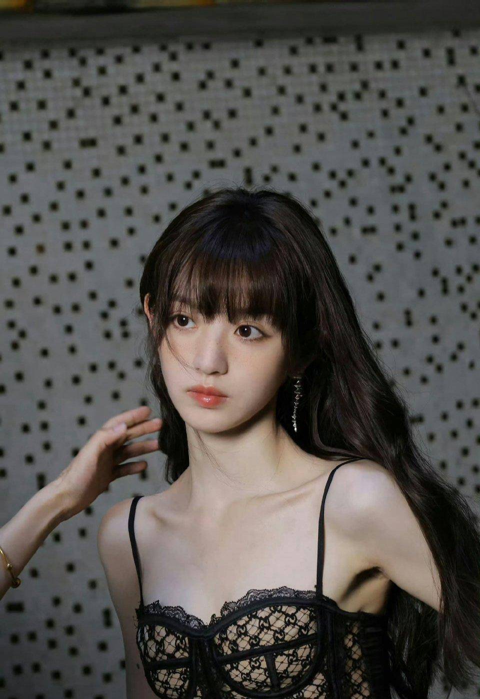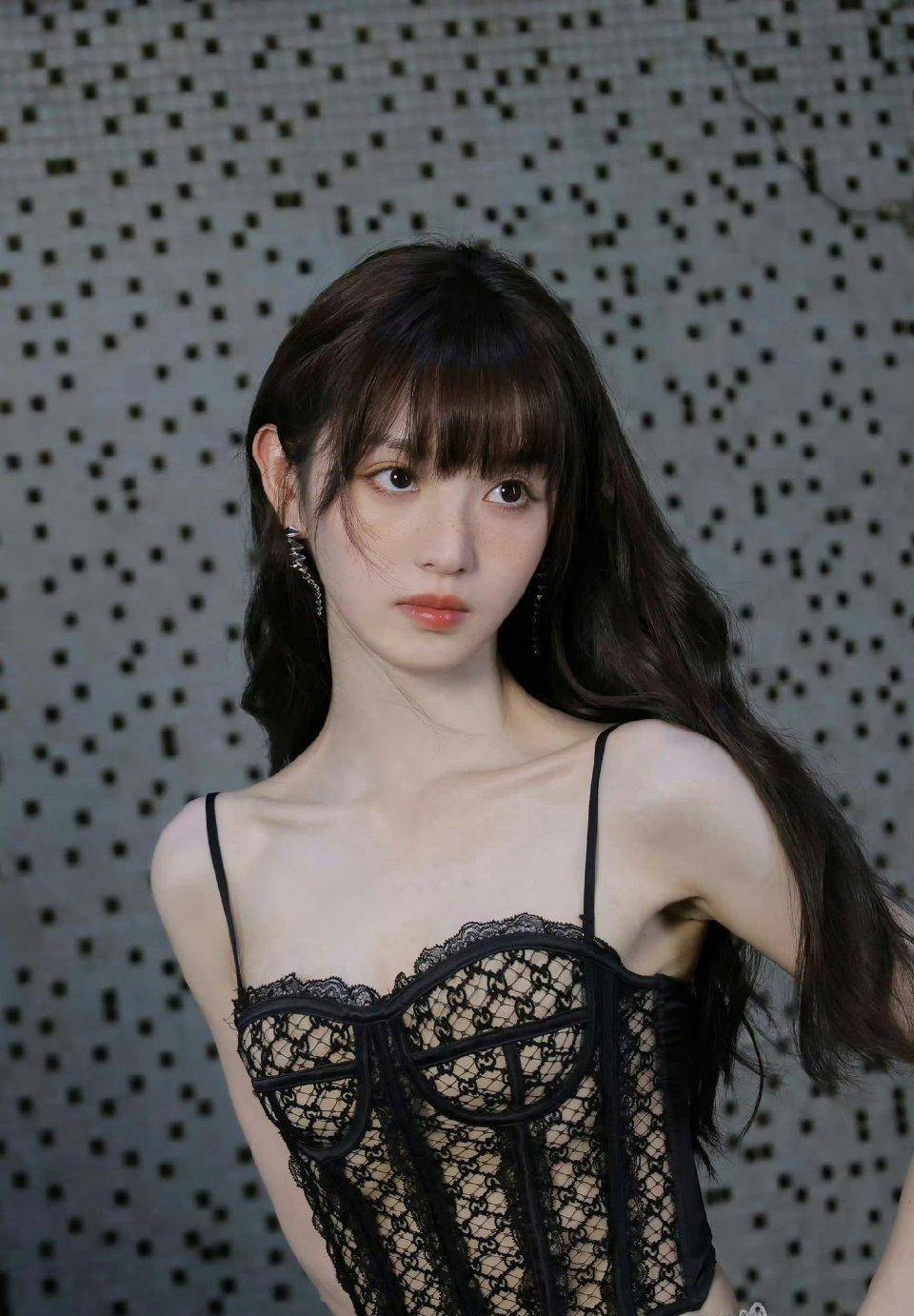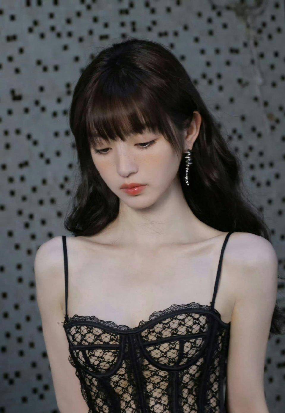 田曦薇的经典标签无疑是“甜美清新”,她在多部影视作品中的表现都让人印象深刻。但这次,她选择用黑色蕾丝吊带装来打破大家对她的固有印象。蕾丝材质自带浪漫与性感属性,而黑色的运用更是增添了几分神秘与成熟。吊带的设计大胆地展示出她的肩颈线条,精致的蕾丝花纹在灯光下若隐若现,仿佛诉说着她内心深处的时尚野心。
