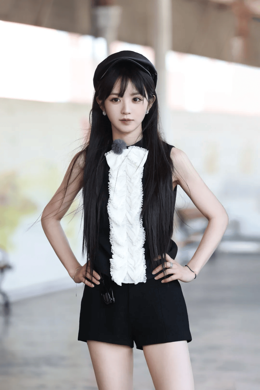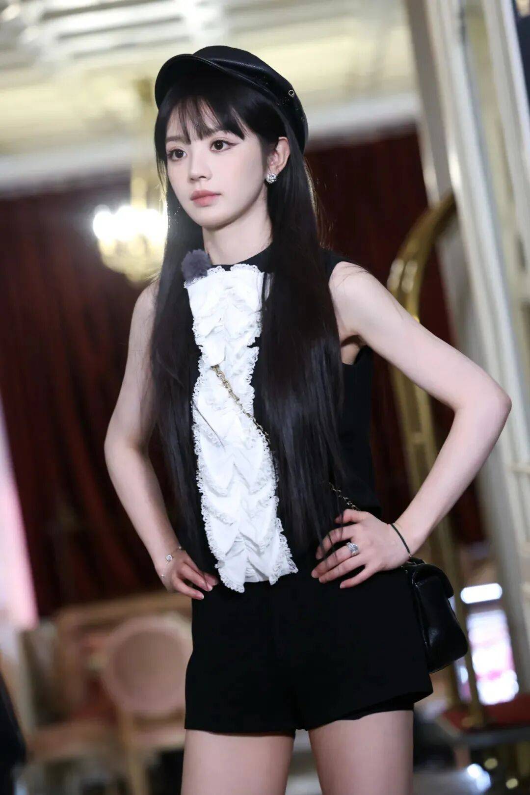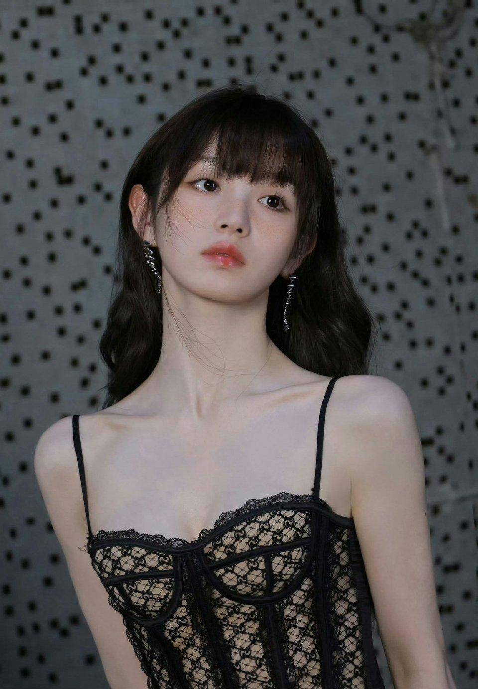田曦薇的经典标签无疑是“甜美清新”,她在多部影视作品中的表现都让人印象深刻。但这次,她选择用黑色蕾丝吊带装来打破大家对她的固有印象。蕾丝材质自带浪漫与性感属性,而黑色的运用更是增添了几分神秘与成熟。吊带的设计大胆地展示出她的肩颈线条,精致的蕾丝花纹在灯光下若隐若现,仿佛诉说着她内心深处的时尚野心。