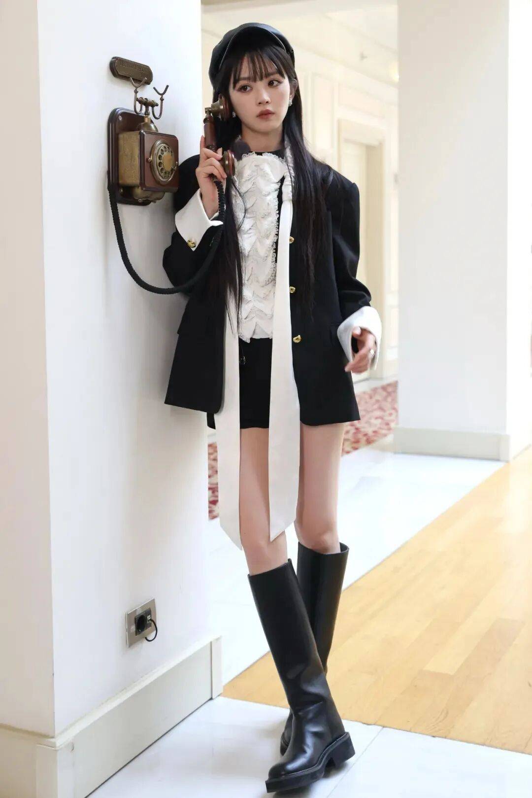 田曦薇完美驾驭甜酷风,巧妙平衡少女感与不羁范。她用甜美蕾丝衬衫混搭黑色皮裙,甜笑与一抹烟熏妆碰撞出又甜又飒的独特气质。这身造型既不失少女的灵动,又带着恰到好处的酷感,充分展现了其高超的穿搭功力与可塑性。
