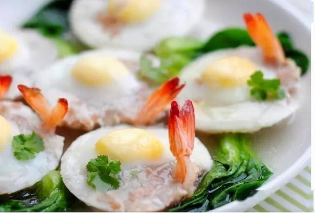 食材明细:虾6条、猪肉末150g、上海青6棵、鹌鹑蛋6个、火腿末1大匙,香菜末少许、小碗(我用的蛋挞模,或根据现有工具选择)调料:姜末、葱末、胡椒粉1小勺、料酒1小匙、盐1小匙、水淀粉、高汤、香油1匙、生抽1匙、蚝油1匙