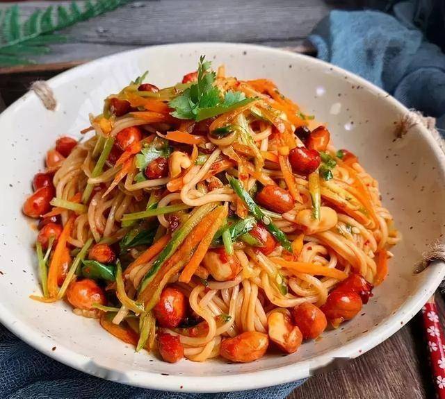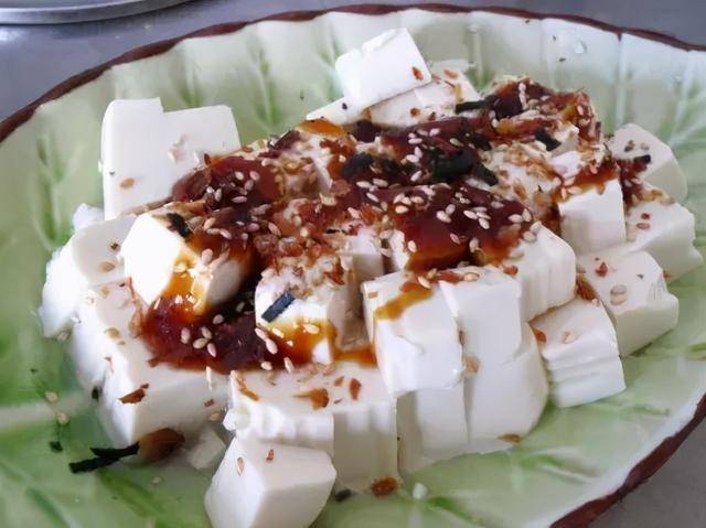 材料:豆腐300克,黄瓜30克,胡萝卜30克,榨菜20克,花生20克,香菜适量,盐1/2茶匙,生抽1汤匙,老醋1茶匙,油泼辣子1汤匙,味精1/2茶匙,香油少许。