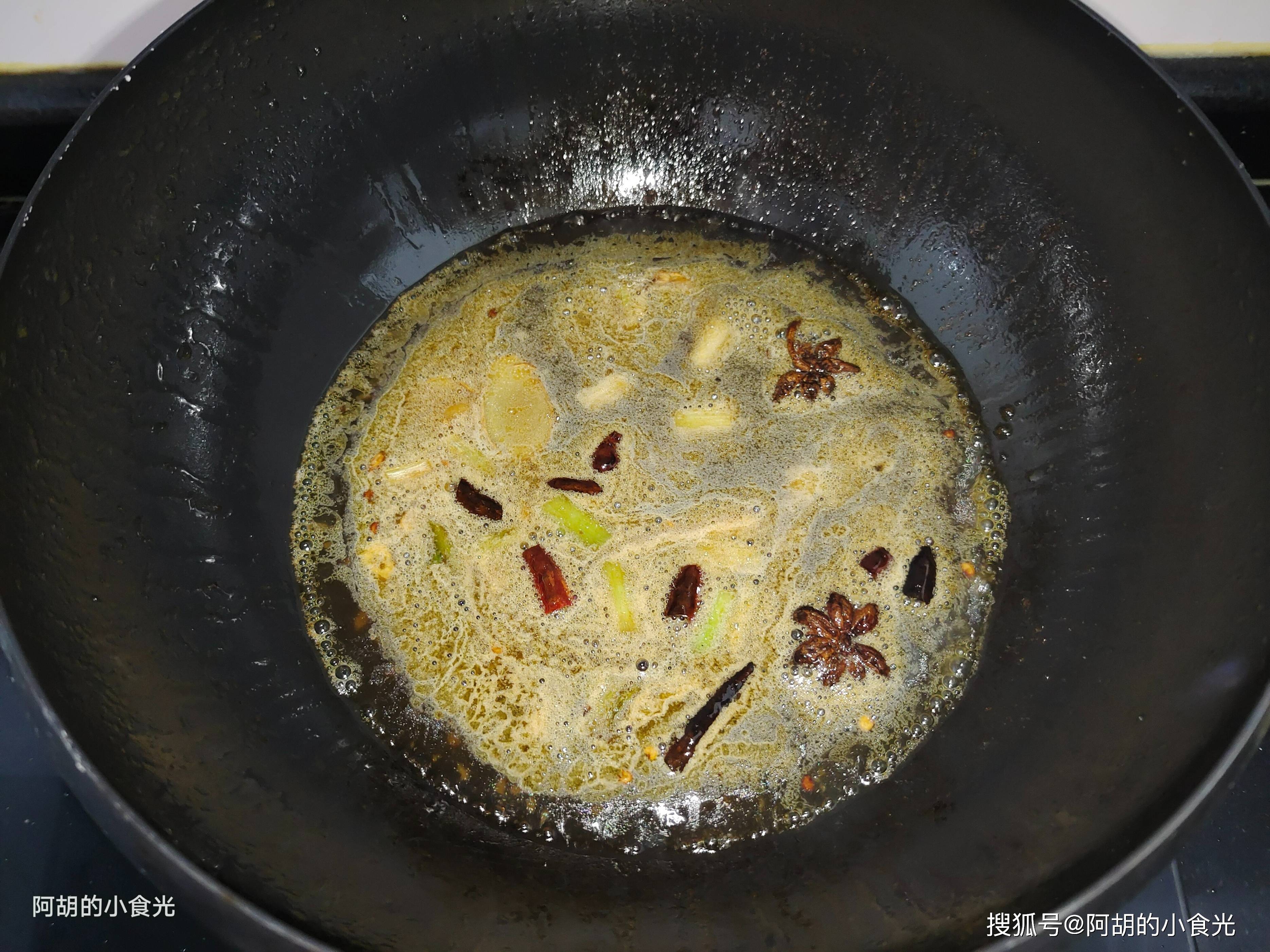 | ② 小料爆香 | 八角+葱姜蒜+干辣椒炒香 | ✅ 关键步骤<br>🔹可用“冷油下八角”慢炸,避免焦苦 |