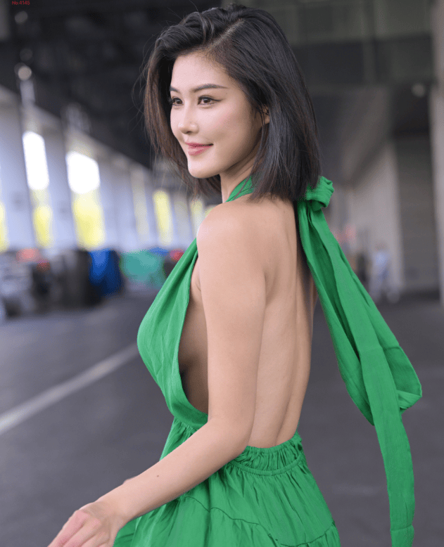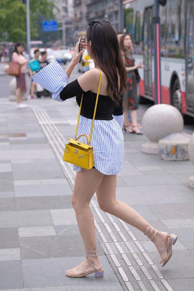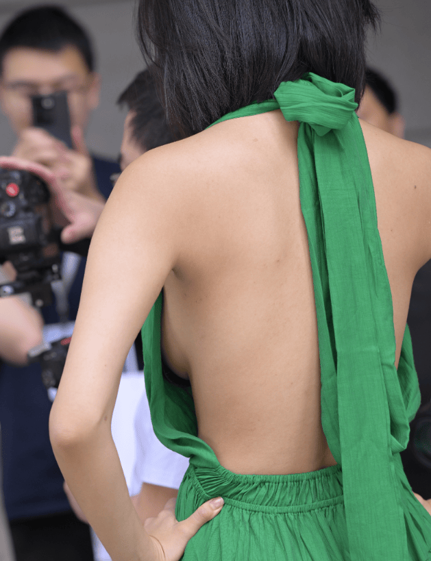 白嫩美女,真空大露背的长裙,怎能不引起围观啊!