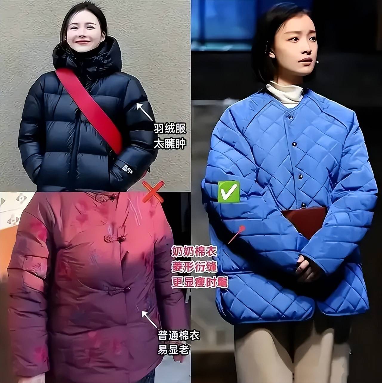 避免膨胀感:羽绒服选绗缝间距宽的款式,减少蓬松感。