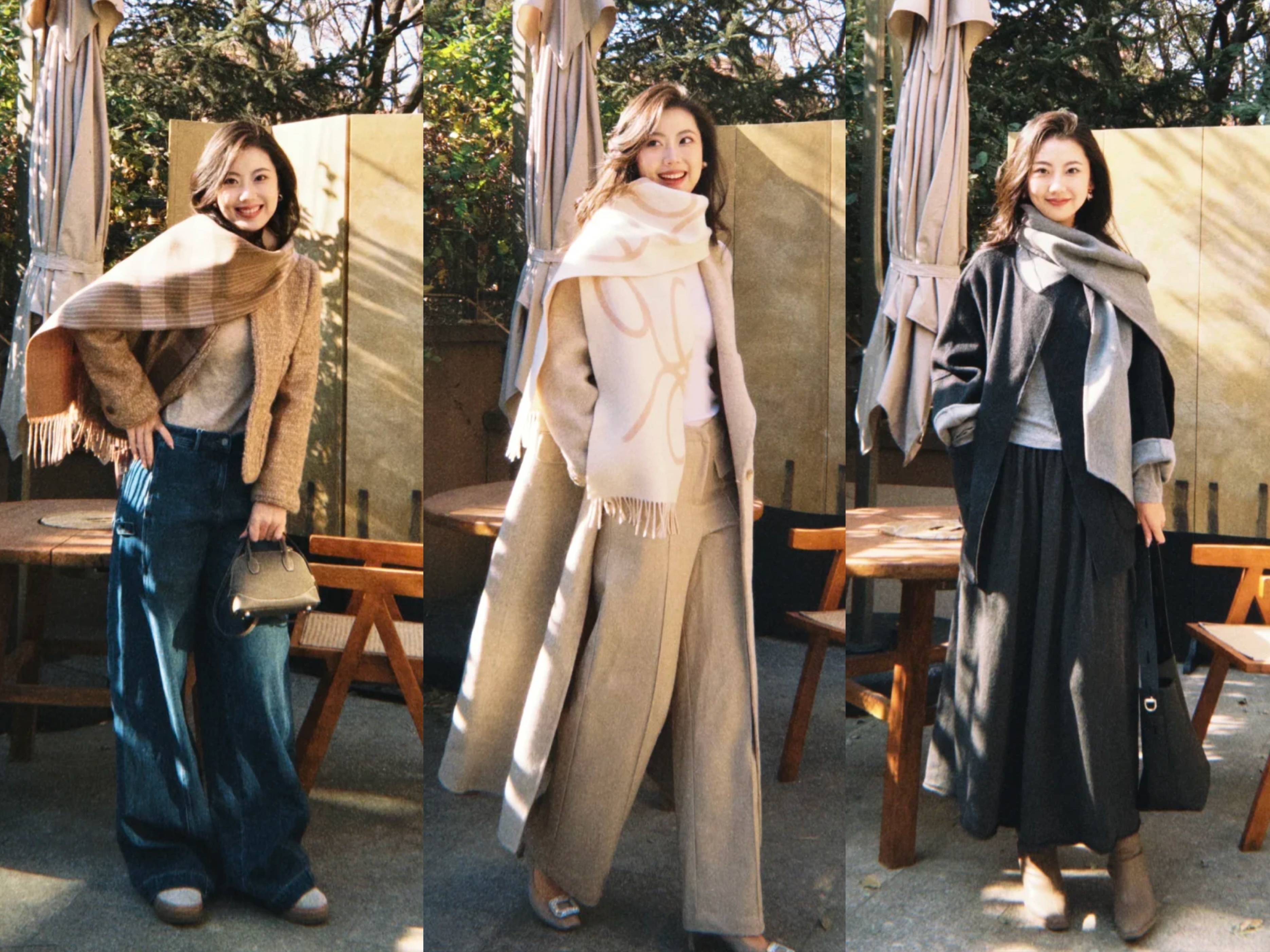 避免蓬松羽绒+膨胀裙摆,选垂感面料更显瘦。