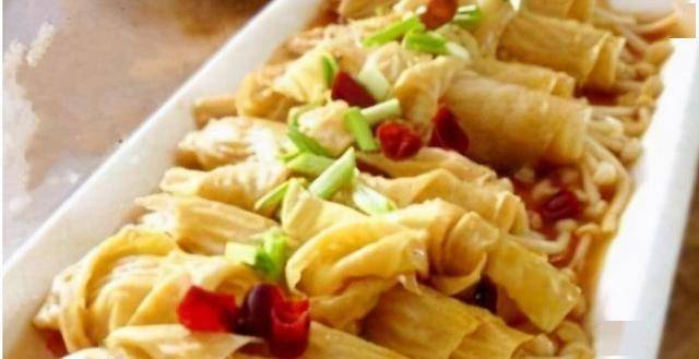 做法:1.金针菇、豆皮洗净;豆皮叠好,分成等份