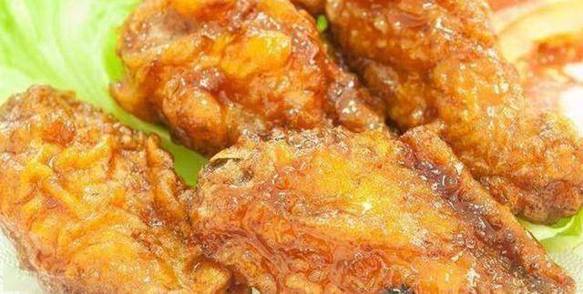 3,往腌制好的鸡翅中撒适量的面粉,然后抖一抖,抖掉多余的面粉,放入油锅中,炸至两面金黄即可。
