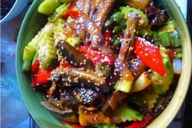 3.锅内放少许油,炒香干辣椒;如水,蚝油、盐、香油调味