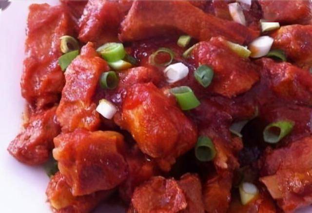 材料:精排骨、番茄、 姜、料酒、生抽酱油、老抽、白糖、盐、鸡精、熟芝麻、葱