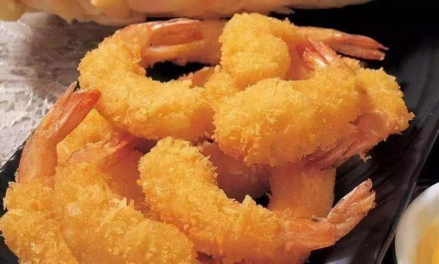 4)腌制好的虾均匀地裹上玉米淀粉,放入蛋液中,再放入面包糠中。