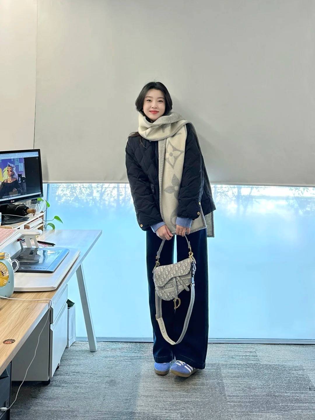 郑秀晶:堪称“老钱风穿搭模板”,常以灰色短款羽绒服搭配蓝色直筒牛仔裤,整体干净利落,脚踩麂皮短靴,突出清冷气质与高级质感。