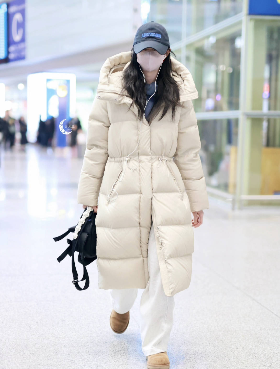 甜Girl刘浩存穿Mackage的米色收腰长款羽绒服,让羽绒服也能穿出腰线,优雅又大气。搭配白色阔腿裤,打造冬日“温柔大小姐”的穿搭~