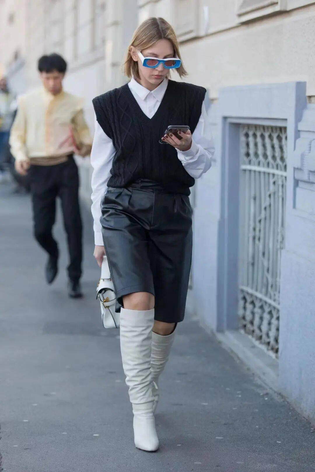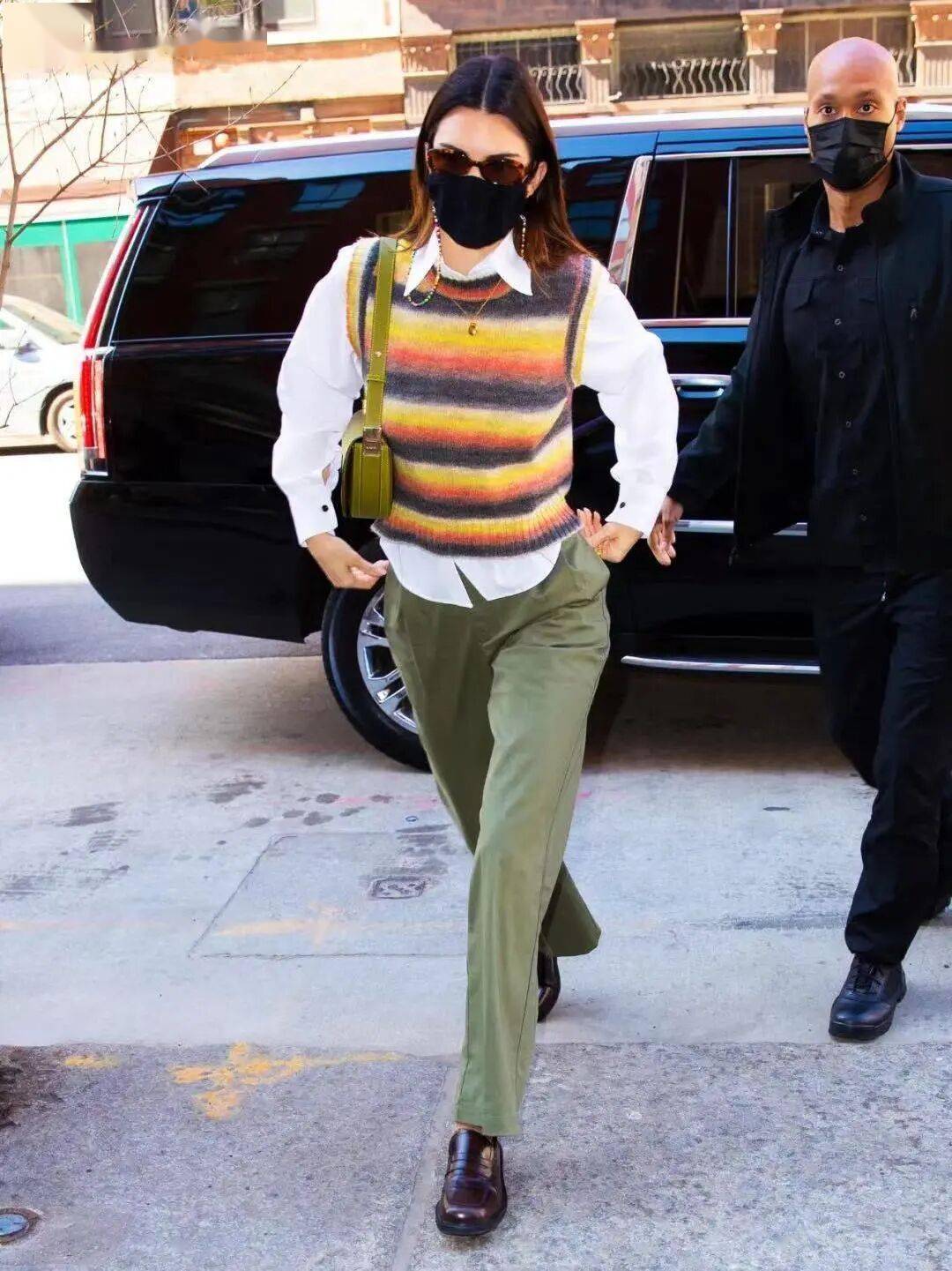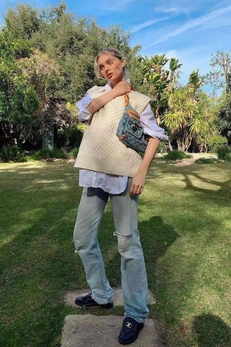 细节处理:马甲选V领设计,露出衬衫领口;下装搭配牛仔裤或A字裙,休闲不失精致。