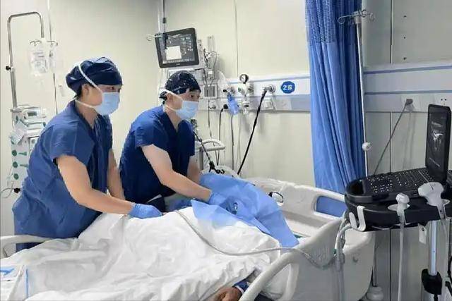 图片2:两名医护人员在病床旁操作,设备齐全 → 表明现代医疗对术后监护的严密性