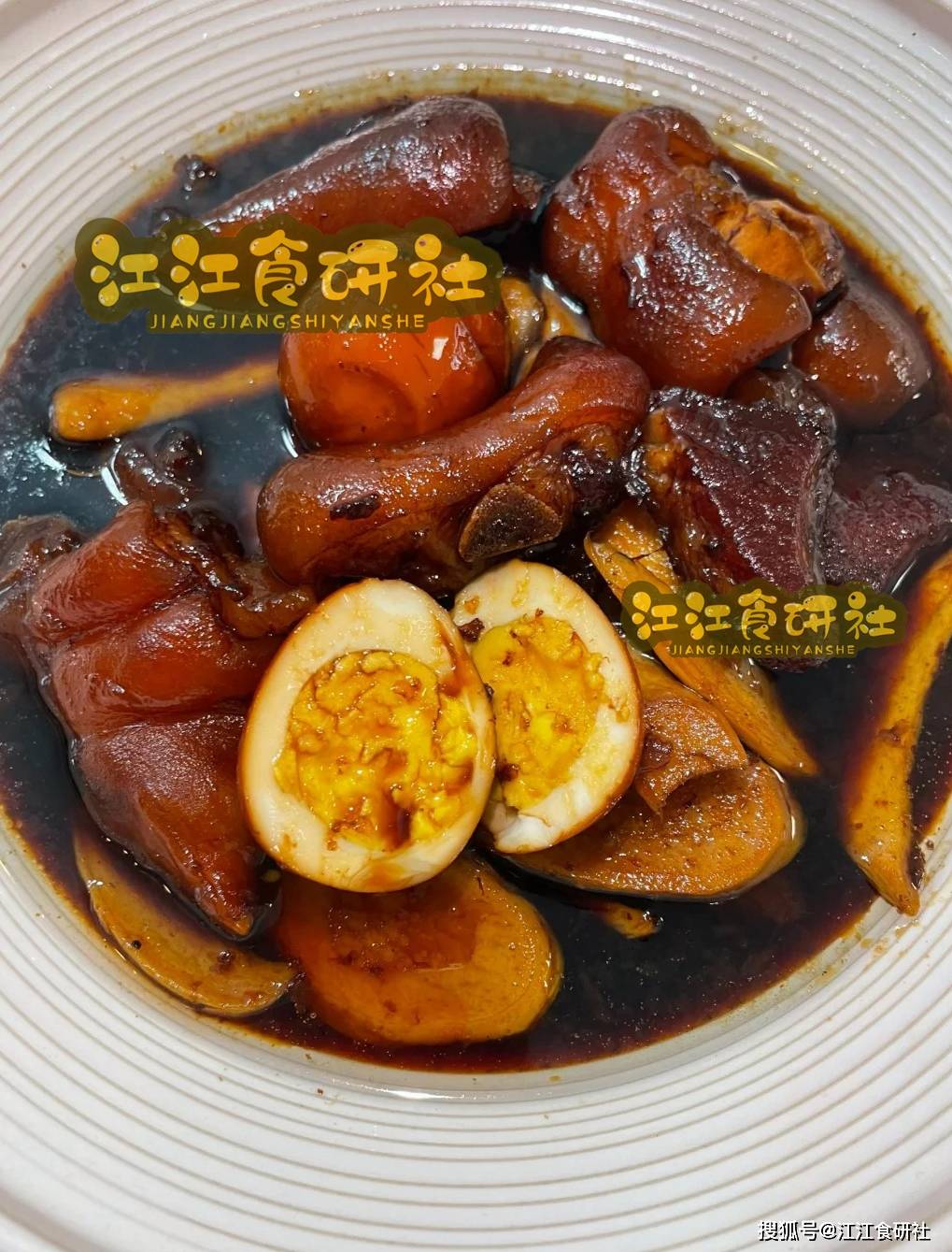 5、鸡蛋是点睛之笔。 煮几个白水蛋,剥壳后在中途放入同煮。鸡蛋吸饱了汤汁,变得黝黑发亮,味道比肉还吸引人。