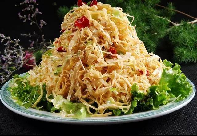 材料:豆腐皮,干辣椒,香菜,白芝麻