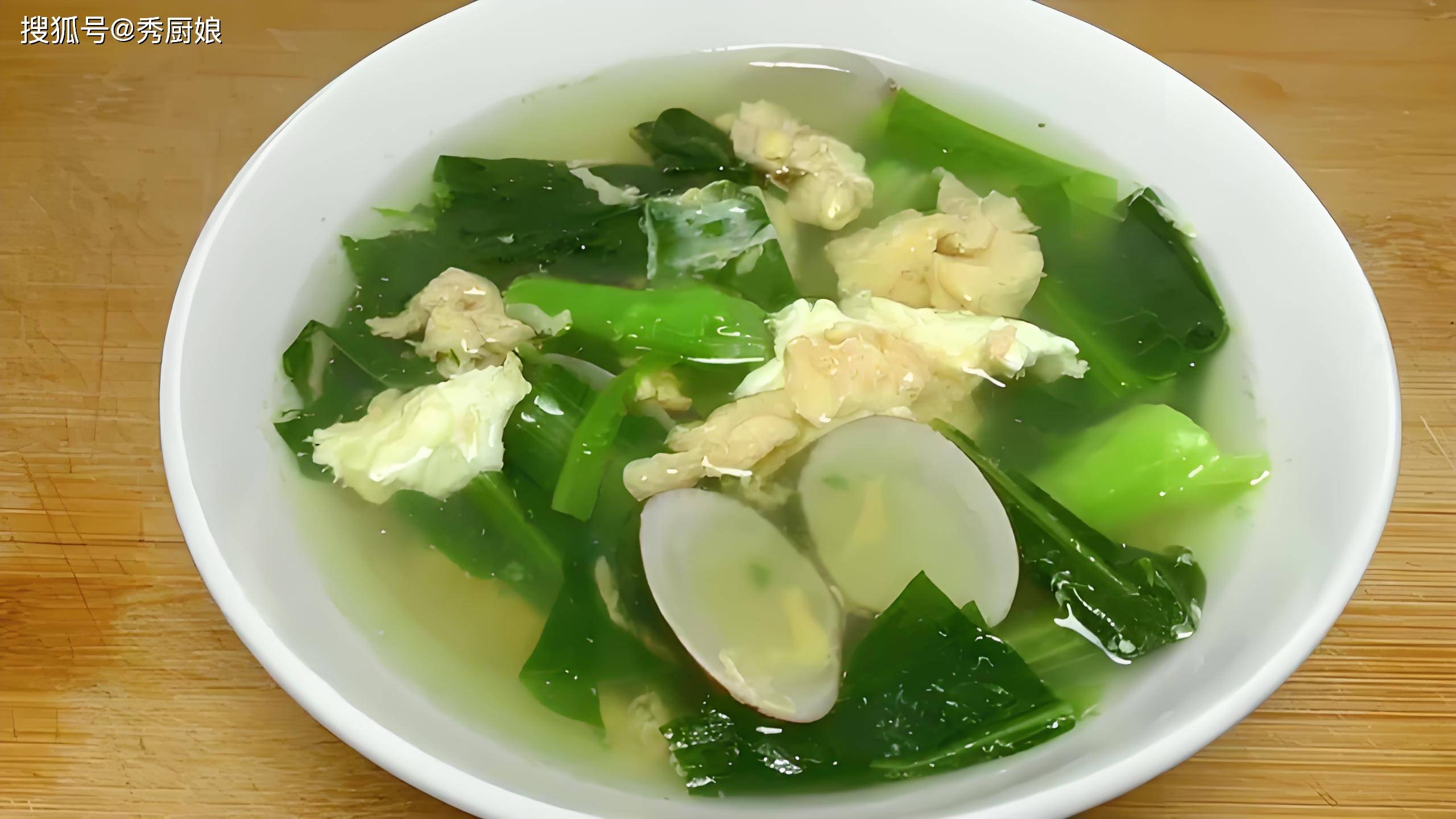 🍲 推荐食谱:油麦菜花蛤蛋花汤(3分钟快手汤)