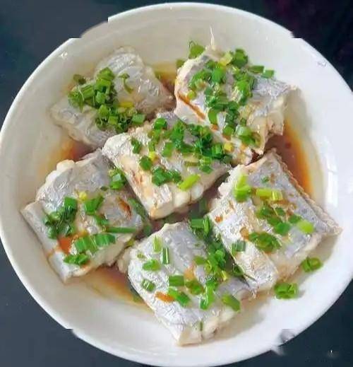 带鱼300克、生姜1小块、大葱1根、料酒10毫升、盐3克、白胡椒粉1克、蒸鱼豤油15毫升、食用油10毫升、小葱1根。