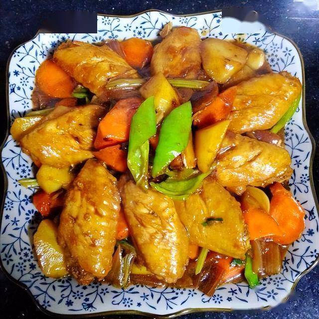 材料:鸡全翅1200克、胡萝卜100克、土豆250克、红薯250克、洋葱100克、香芹100克、青椒红椒各一个、甜面酱2汤匙、蚝油2汤匙、番茄酱2汤匙、生抽2汤匙、蜂蜜1汤匙、大蒜100克、鲜姜50克、盐2茶匙、胡椒粉1茶匙、料酒2茶匙、黄油20克、植物油2汤匙;