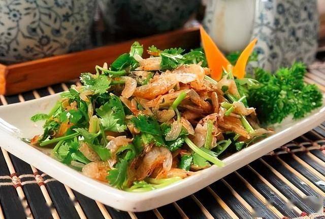 拌:虾皮拌香菜(调味平衡)