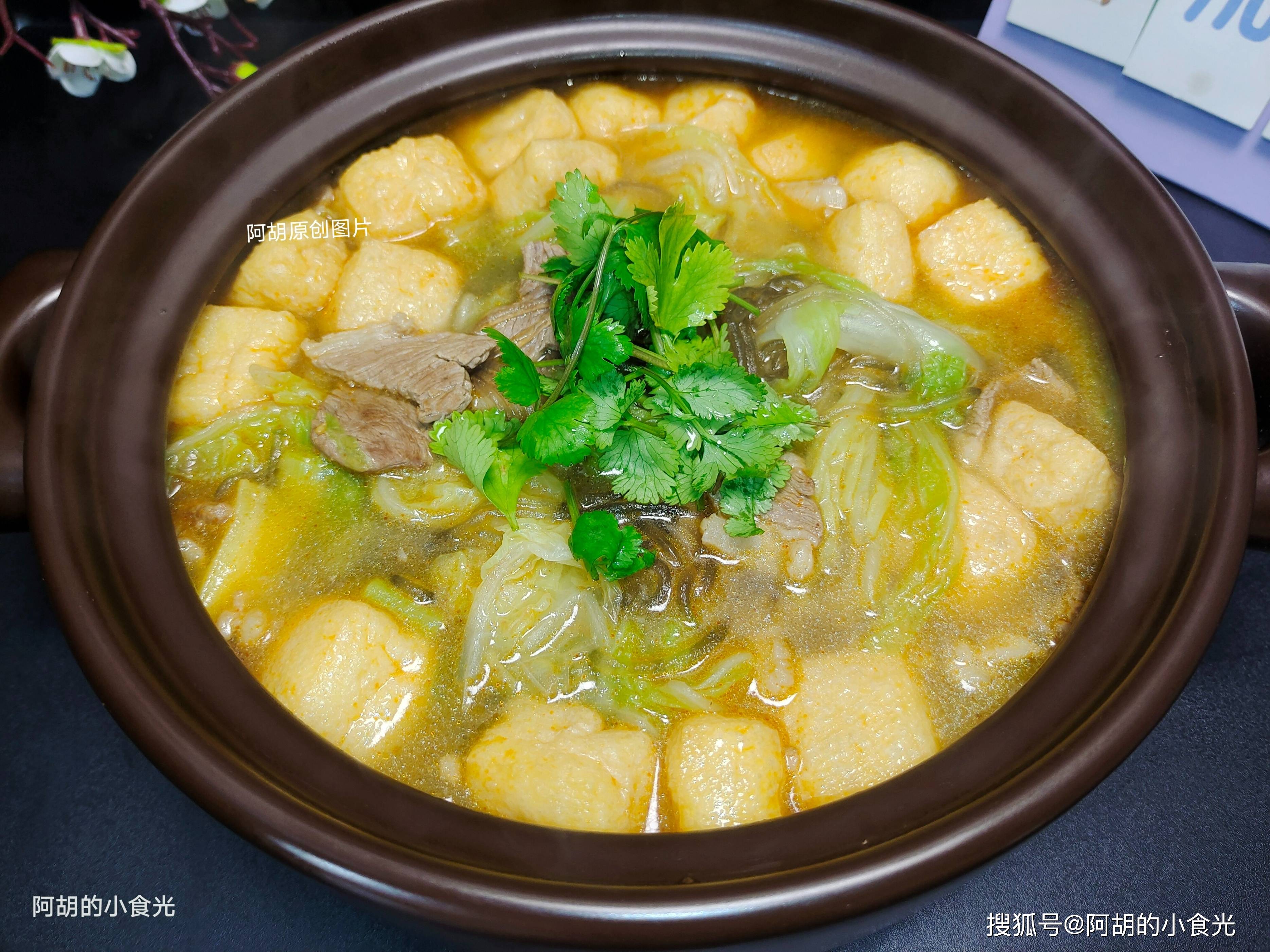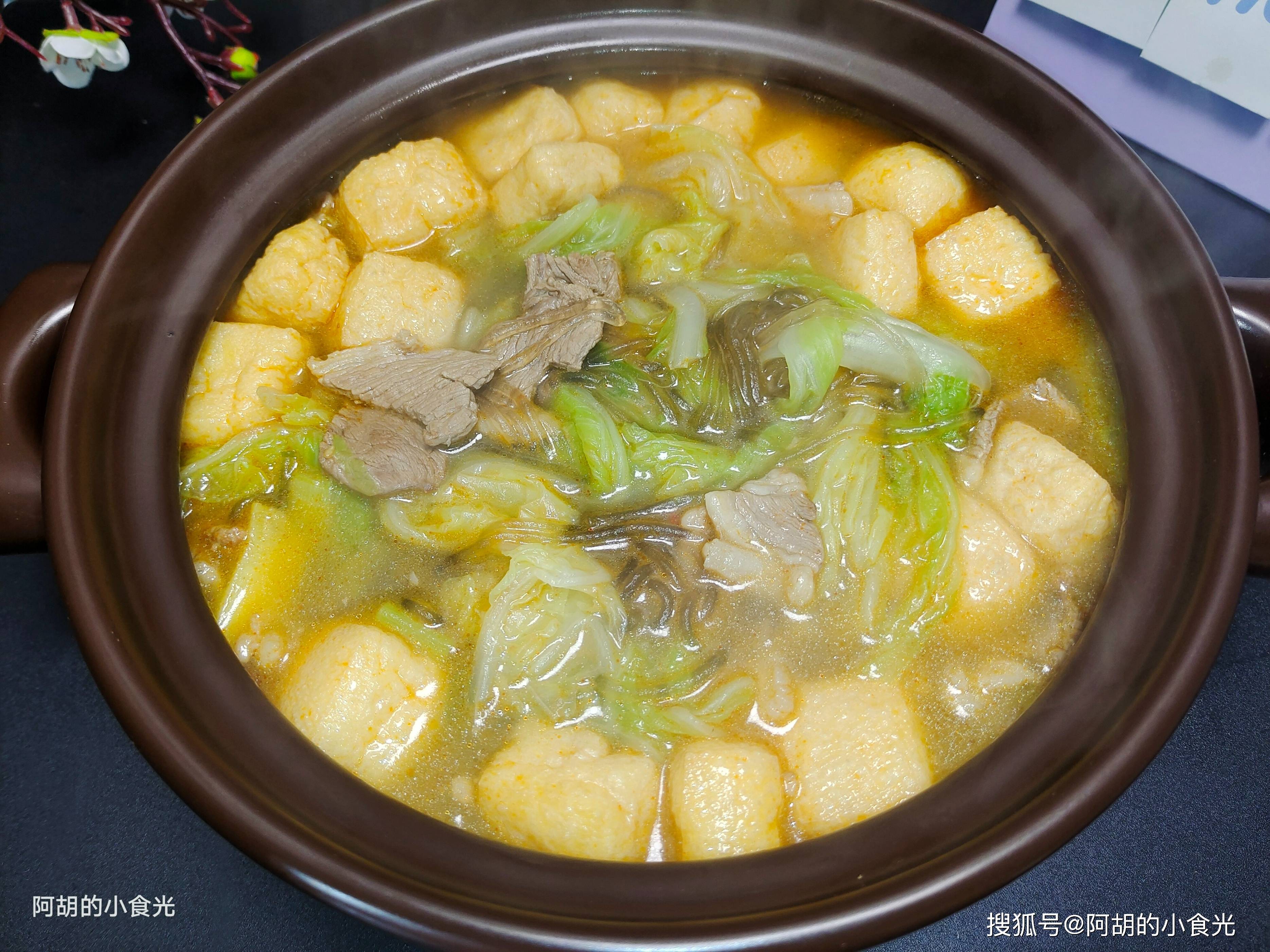 羊肉就是今天这道菜的食材,是个冬季必吃的肉类,传说医圣张仲景发明的“驱寒娇耳汤”中的饺子就是用羊肉包的,主要的目的就是驱寒。今天咱们就来一个简单易做能喝汤的炖菜,搭配大白菜、粉条和油豆腐,4种食材堪称神仙组合,简单炖一炖就是一道好菜。