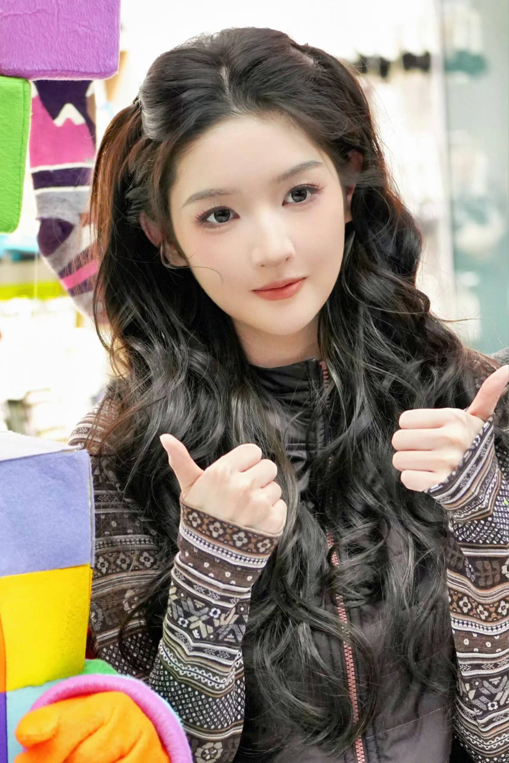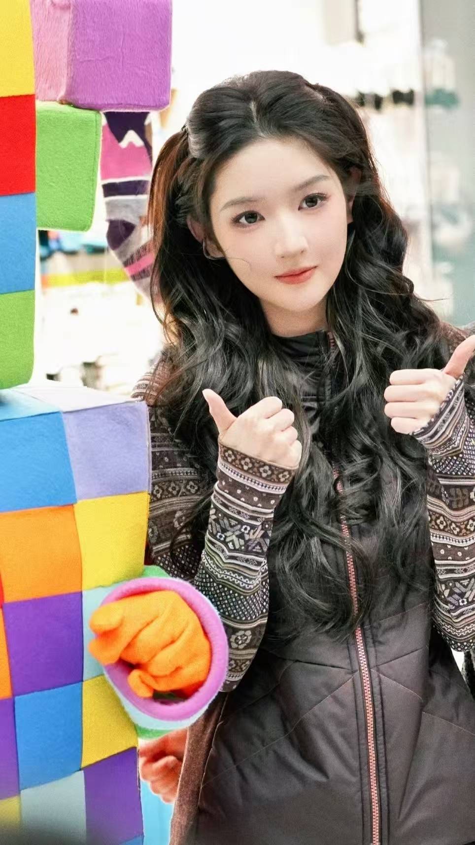 视频里的王玉雯造型绝到犯规,一头黑长卷发做了双马尾编发,蓬松又灵动,搭配深色系的户外风穿搭,甜酷中带着软萌感。她拿着印有“Smartwool”的麦克风,对着镜头或浅笑或眨眼,眼睛亮晶晶的像盛满了星光,苹果肌饱满又自然,每一帧都像被童话滤镜包裹,网友狂喊“这不是真人,是迪士尼在逃公主吧”。