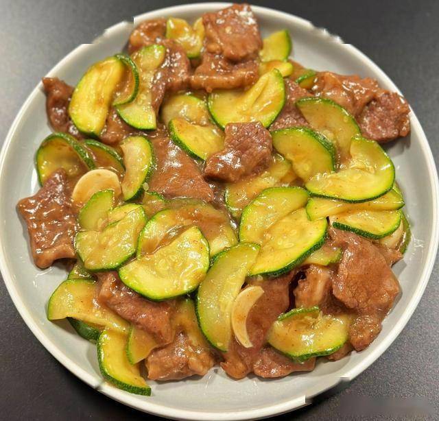 牛肉、西葫芦、口蘑、蒜末、生抽、蚝油、黑胡椒粉、盐
