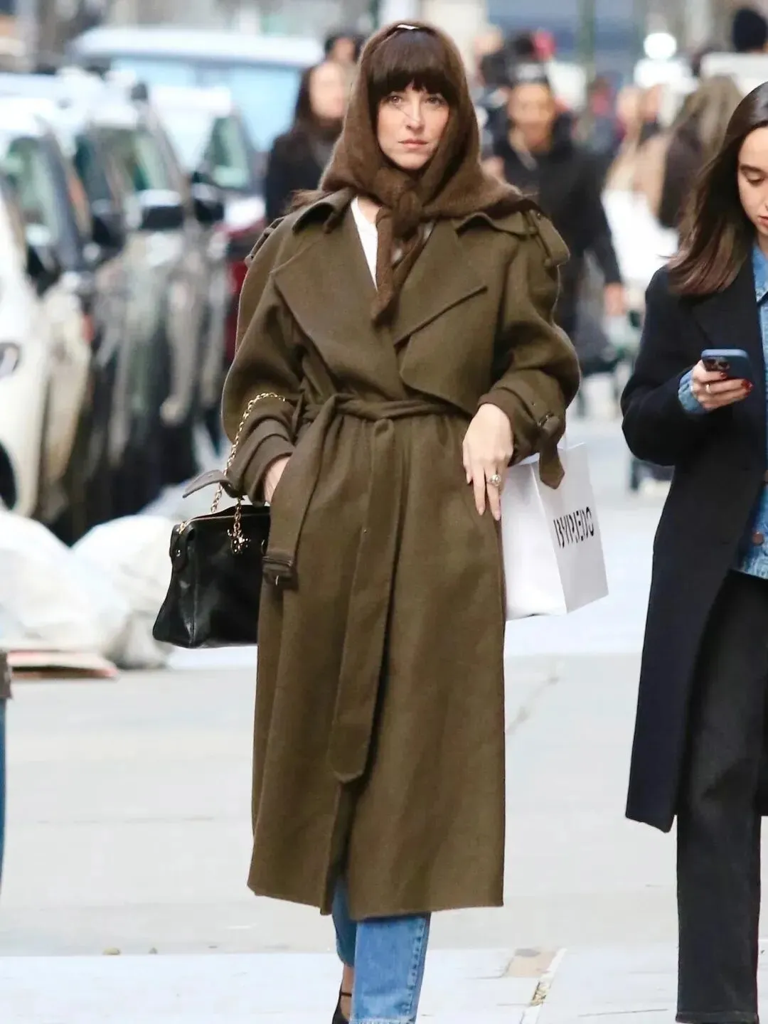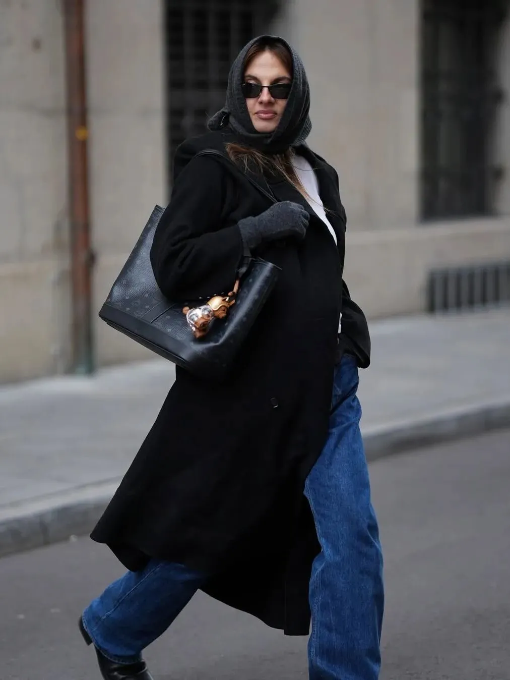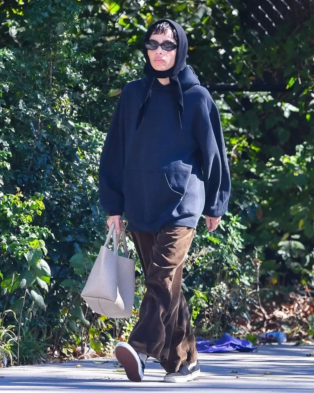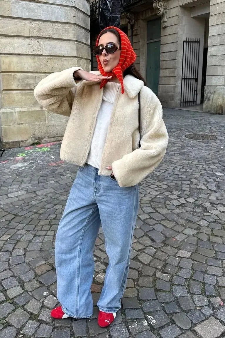 肯豆(Kendall Jenner):偏好极简主义,常以纯色三角围巾搭配修身裤装,突出短款设计对比例的优化,营造“上宽下窄”的利落感。