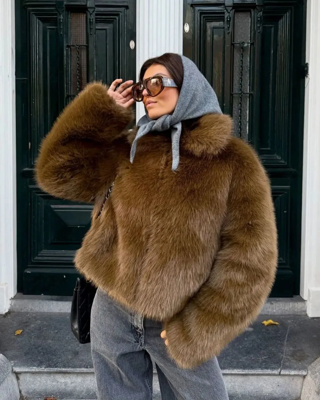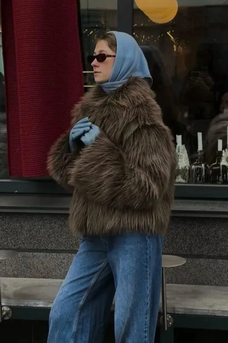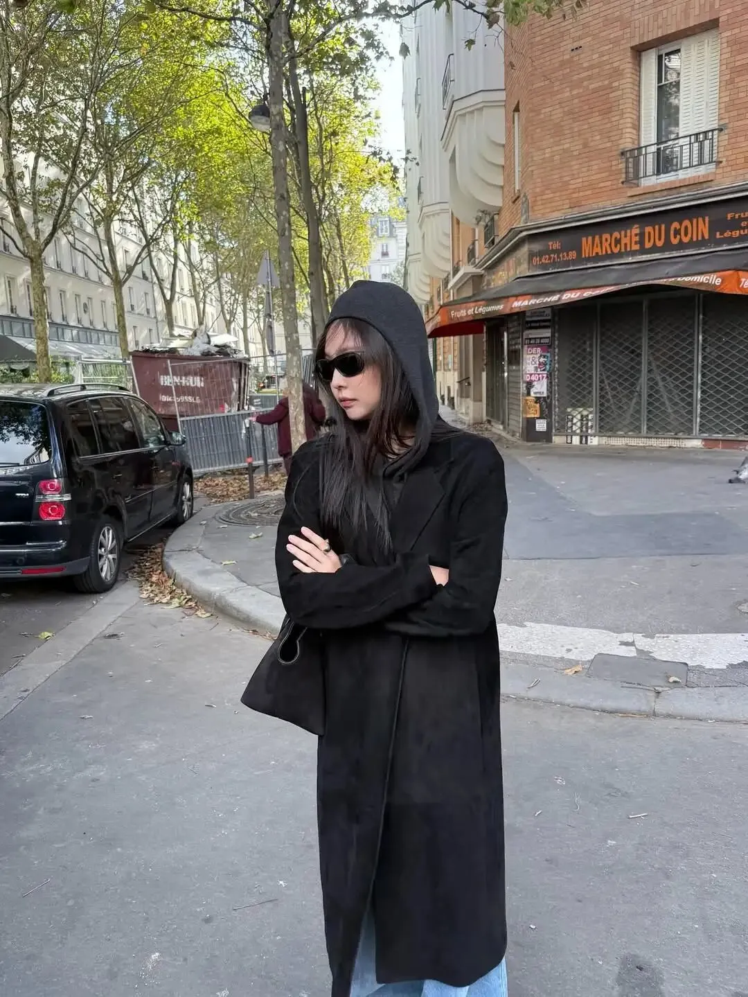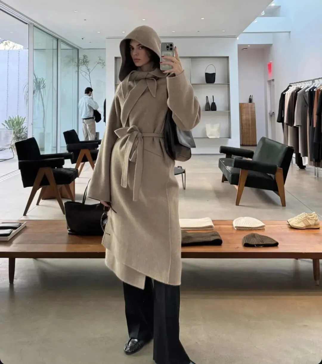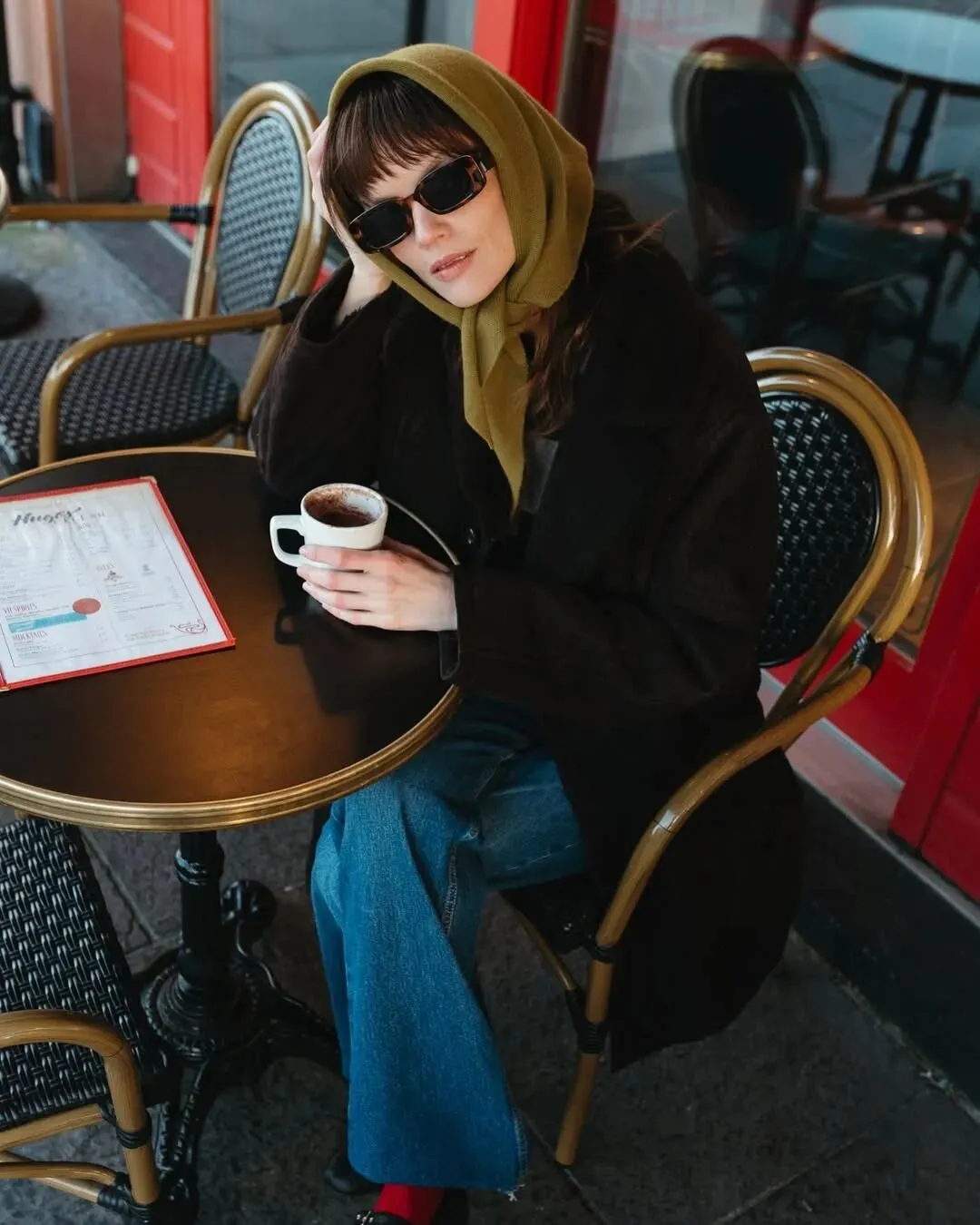 通勤风:高领毛衣 + 大衣 + 流苏三角巾 → 提升职业装高级感;