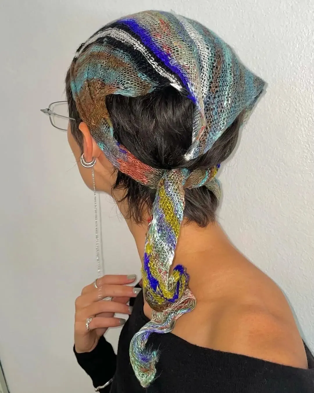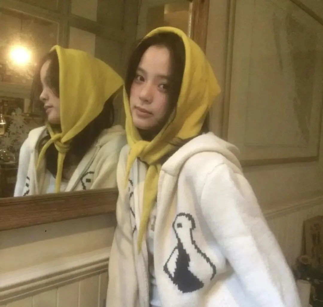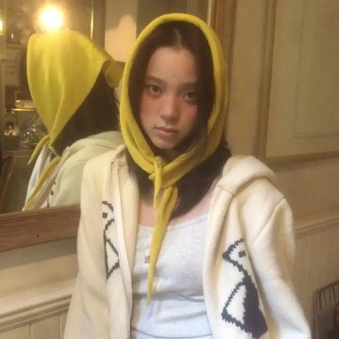 Jennie:擅长混搭甜酷风,选择蕾丝钩花或拼接款三角巾,作为发饰或披肩,强化复古俏皮氛围。