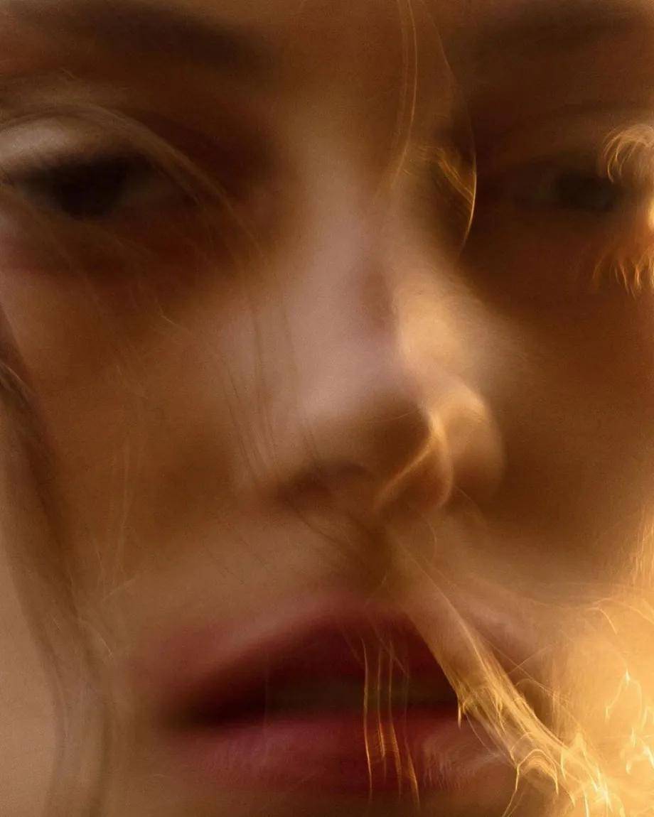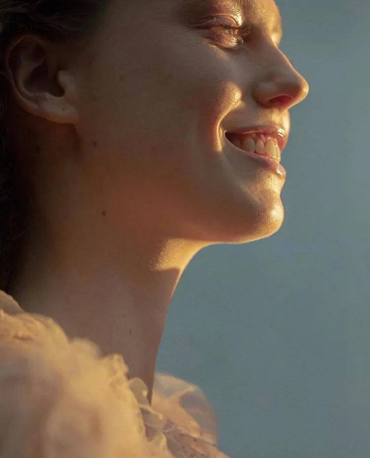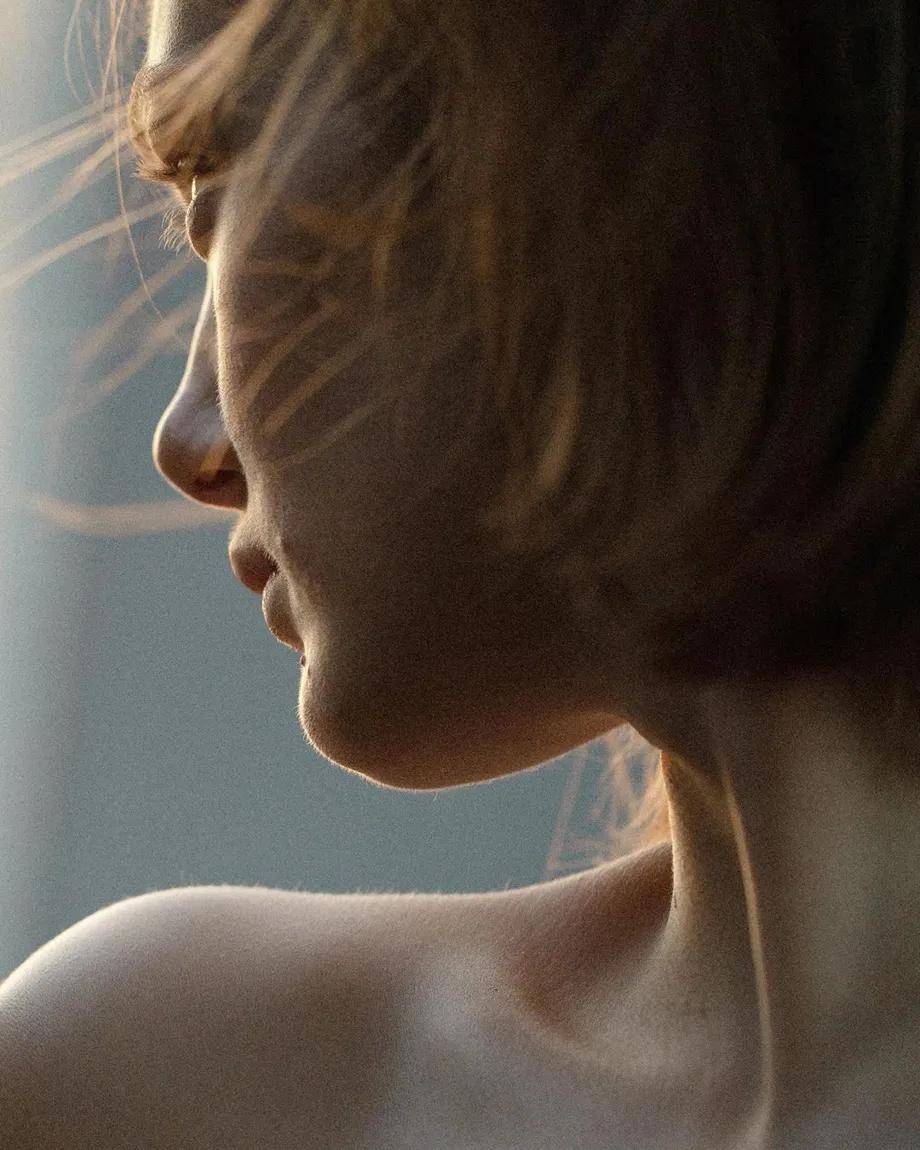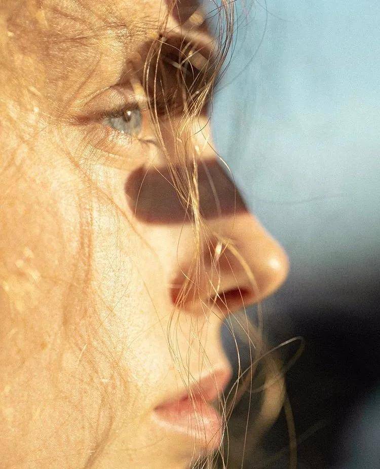 在Instagram每秒上传数千张面孔的时代,卡斯特拉尼选择极简构图、低饱和色调与近乎绘画般的光影处理,刻意剥离背景信息、服饰符号与身份标签。他常使用单色背景、柔焦镜头与自然光的微妙过渡,将人物从日常语境中抽离,迫使观者进入一种专注的凝视状态。