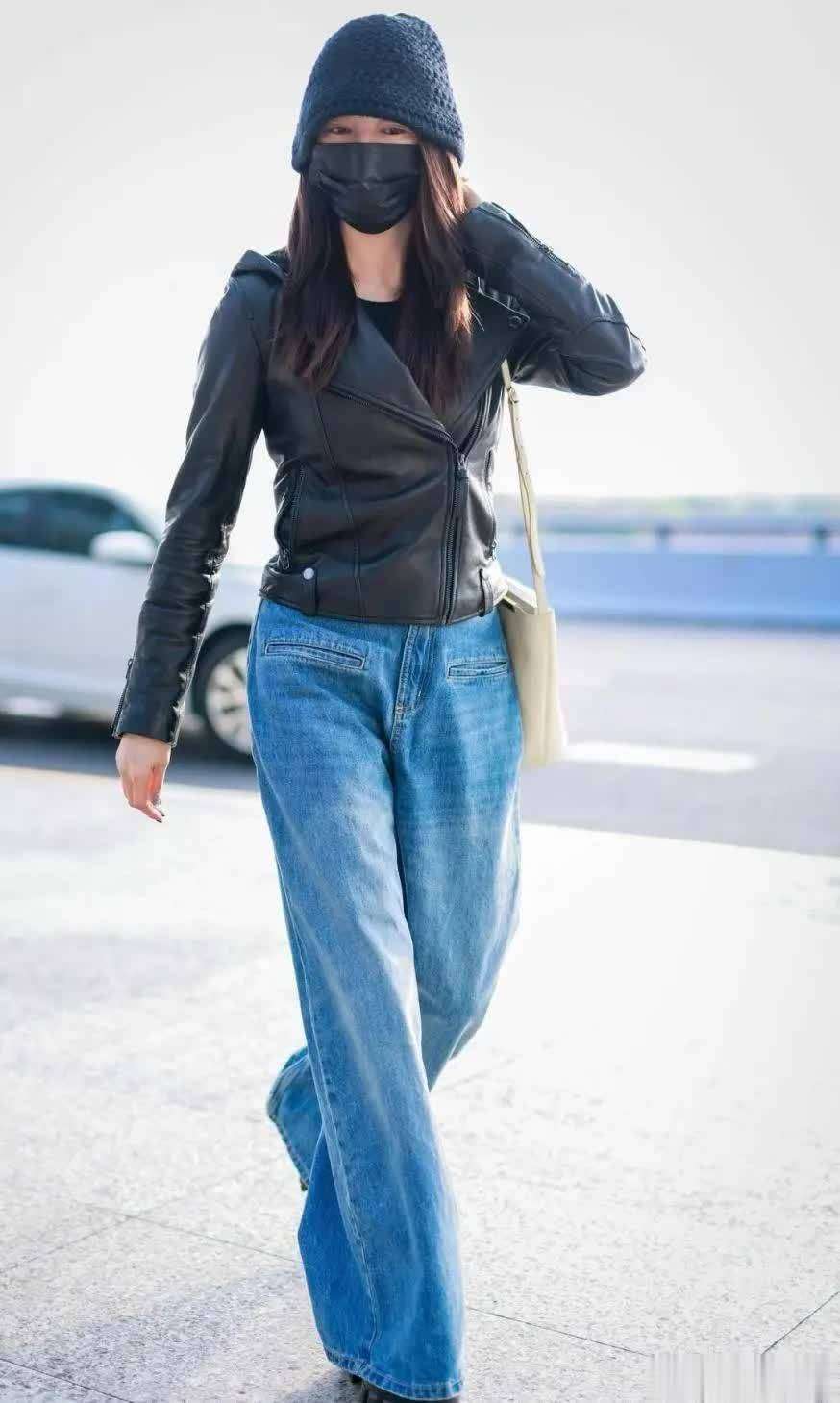 她腿上那条阔腿牛仔裤绝了。颜色是那种复古水洗蓝,松量刚好遮住大腿肉肉,裤脚堆在脚踝上,配双小白鞋,清爽得像刚从校园里走出来。现在商场里加绒阔腿裤都快卖断货了,果然明星带货比主播喊破嗓子管用。