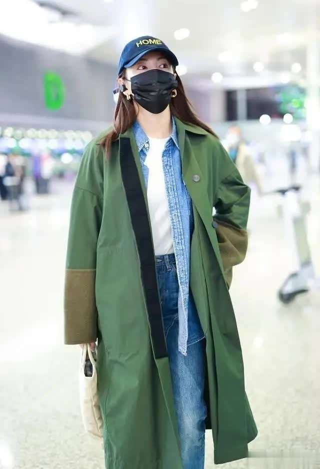 在另一套穿搭中,张雨绮的外套选择了大口袋设计,翻盖的口袋非常抢眼,既能提升外套的时尚感,又实用,可以容纳一些小物件,比如过年的糖果、瓜子,甚至压岁钱都能轻松放进去。搭配上喇叭裤,蓝色的面料与大衣的颜色相得益彰,整体造型既不失优雅,又充满活力。绿色的大衣在众多穿搭中尤为突出,它的长度刚好在小腿肚处,适合身高一米六以上的女生,展现出一种成熟又不失青春气息的美感。蓝色衬衫和大衣敞开的设计,让内搭的白色衣服若隐若现,打破了单一的色彩,让整个造型看起来层次丰富。
